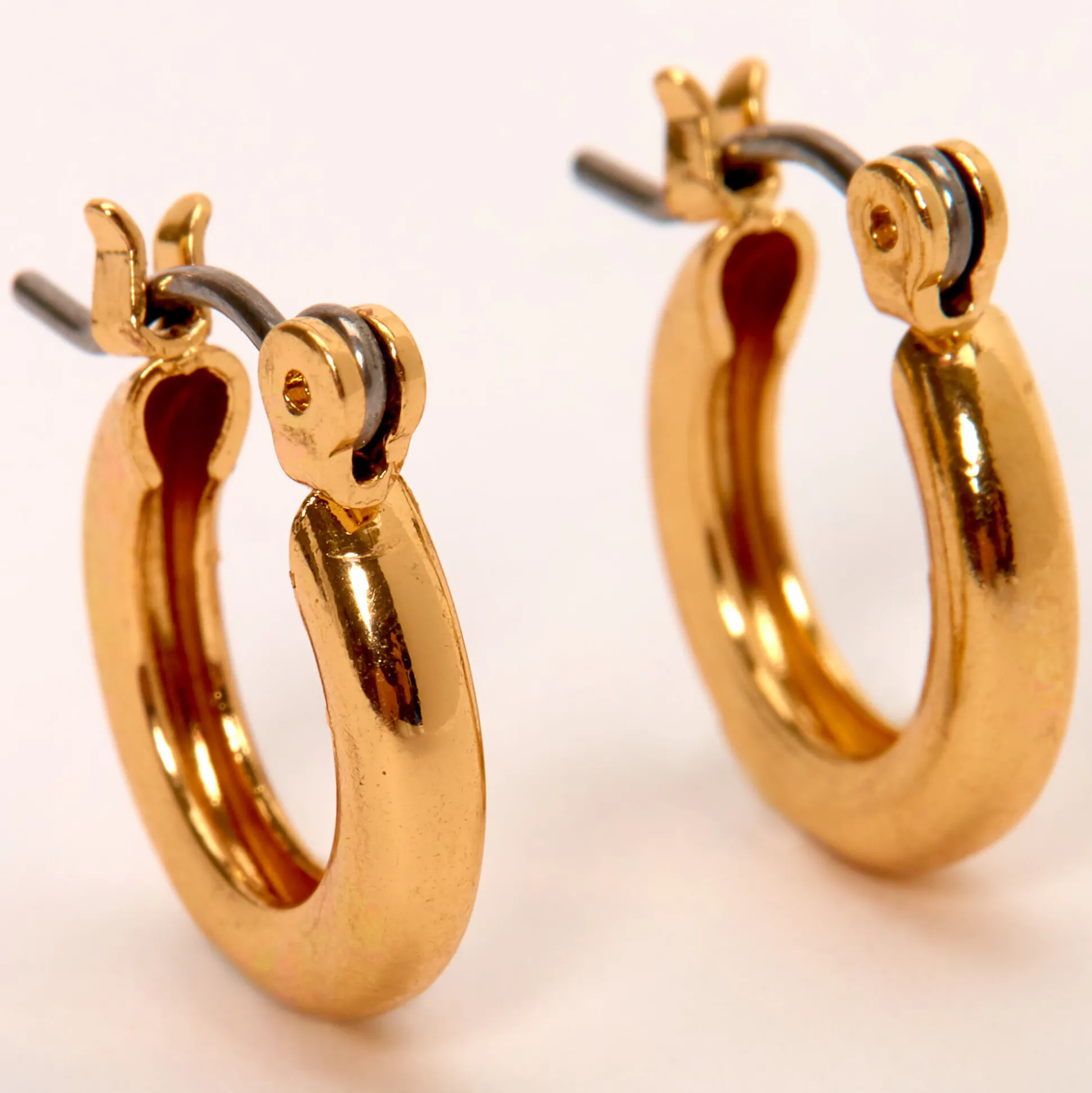 These tiny hollow tube hoop earrings are a perfect way to dress up your look or keep it casual chic! Pair these with other gorgeous gold-tone accessories.