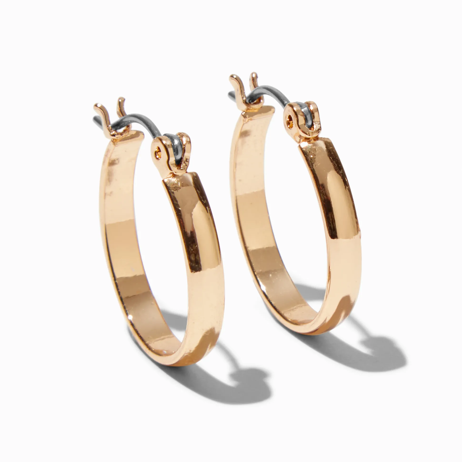 A girl can never have too many pairs of hoop earrings! These gold-tone earrings feature a snap-top closure.