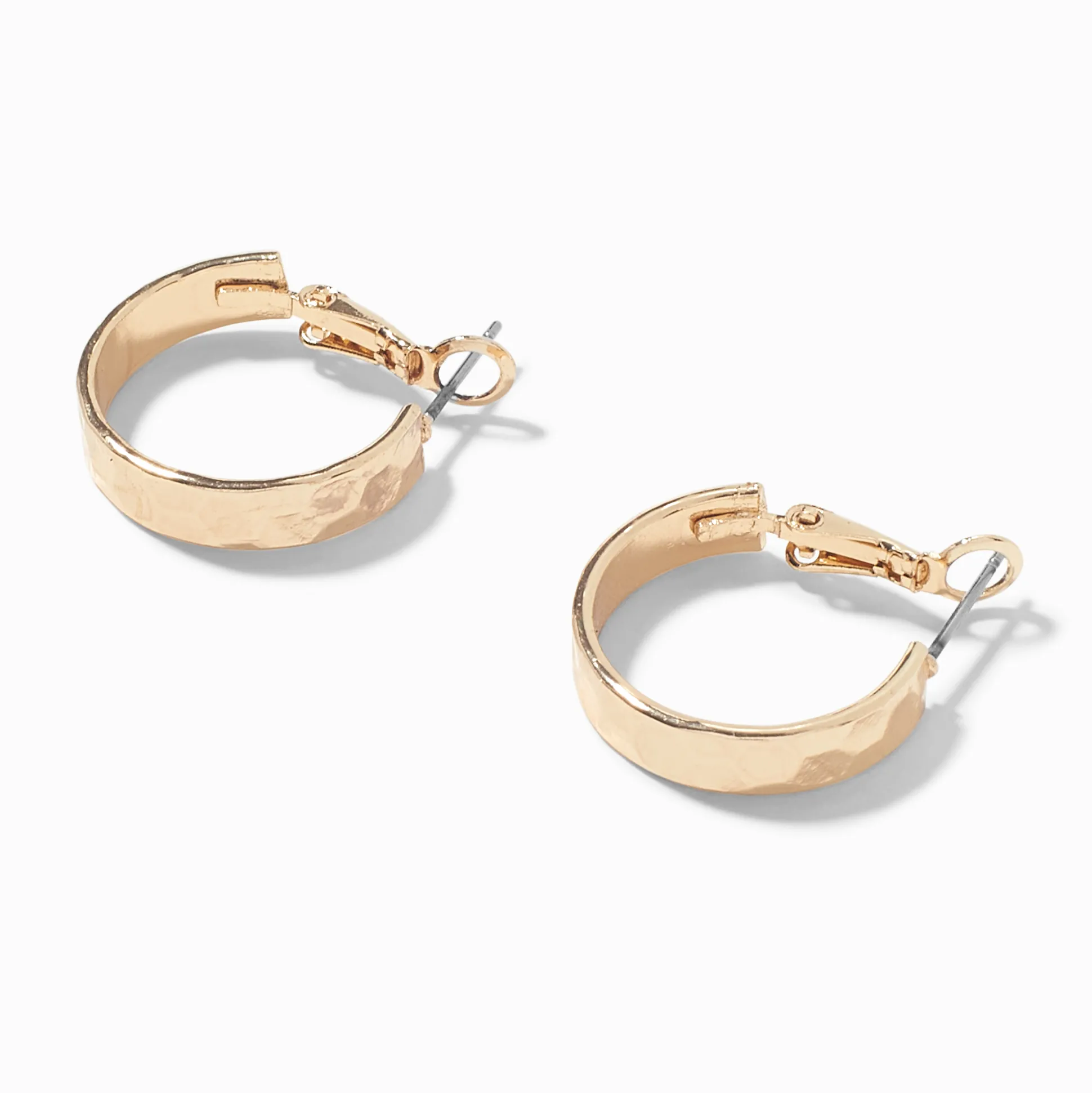 Dress up or dress down these gold-tone hoop earrings. They have a hammered flat hoop design.