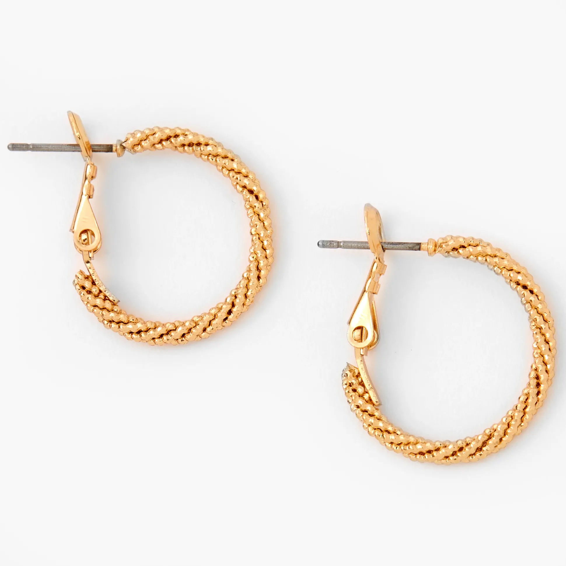 These hoop earrings will give you that pop of detail you need! Featuring a laser cut twisted hoop design, pair these earrings with other gold-tone accessories to complete your trendy look.