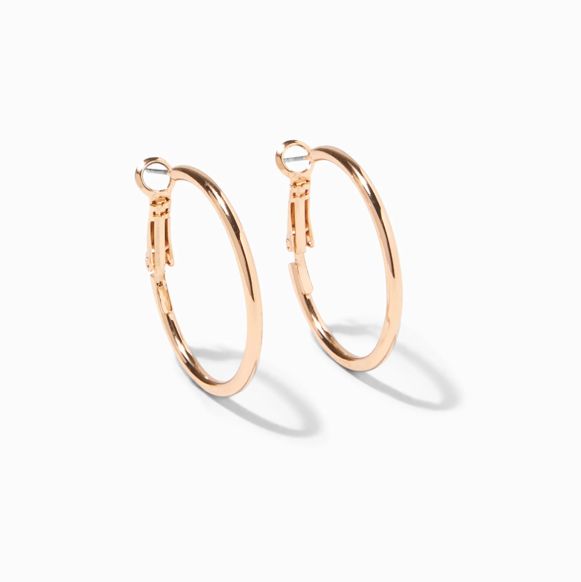 A girl can never have too many pairs of hoop earrings! These gold-tone earrings feature a snap-back closure.