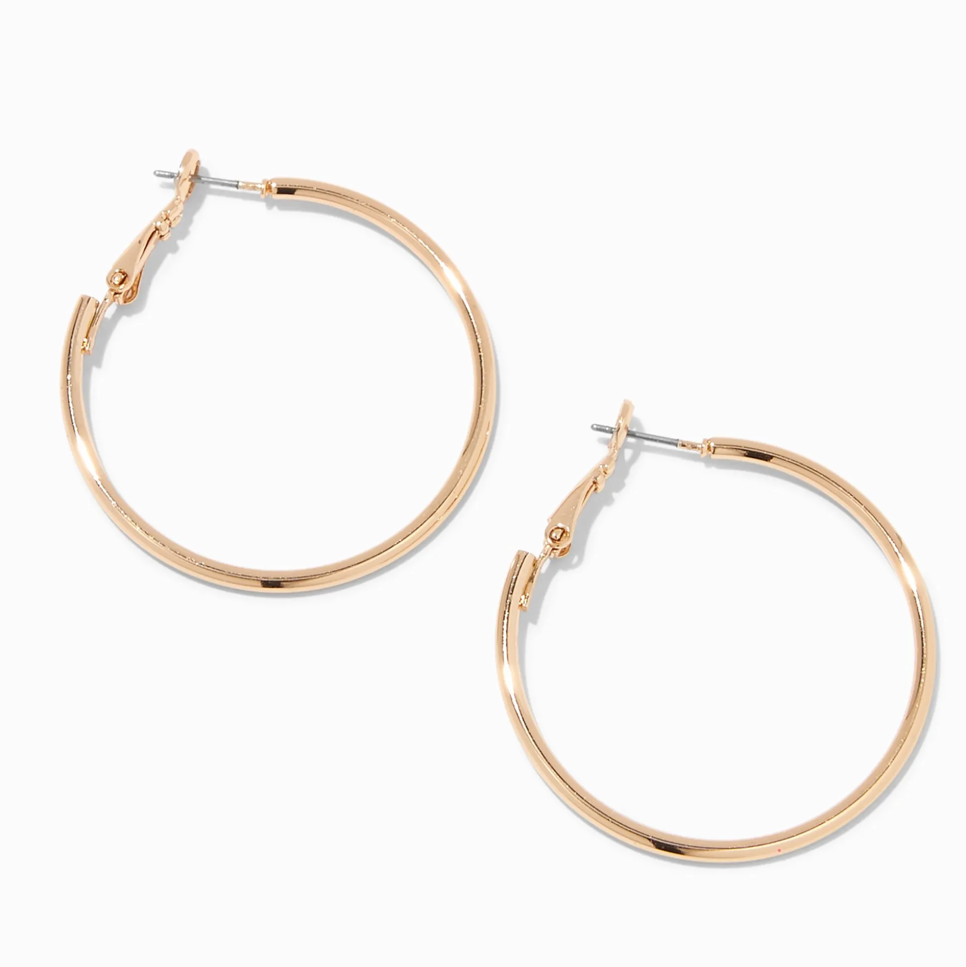 Basic hoops are the building block of a classic look. Build yours with these gold-tone hoops that have a convenient snap back closure.