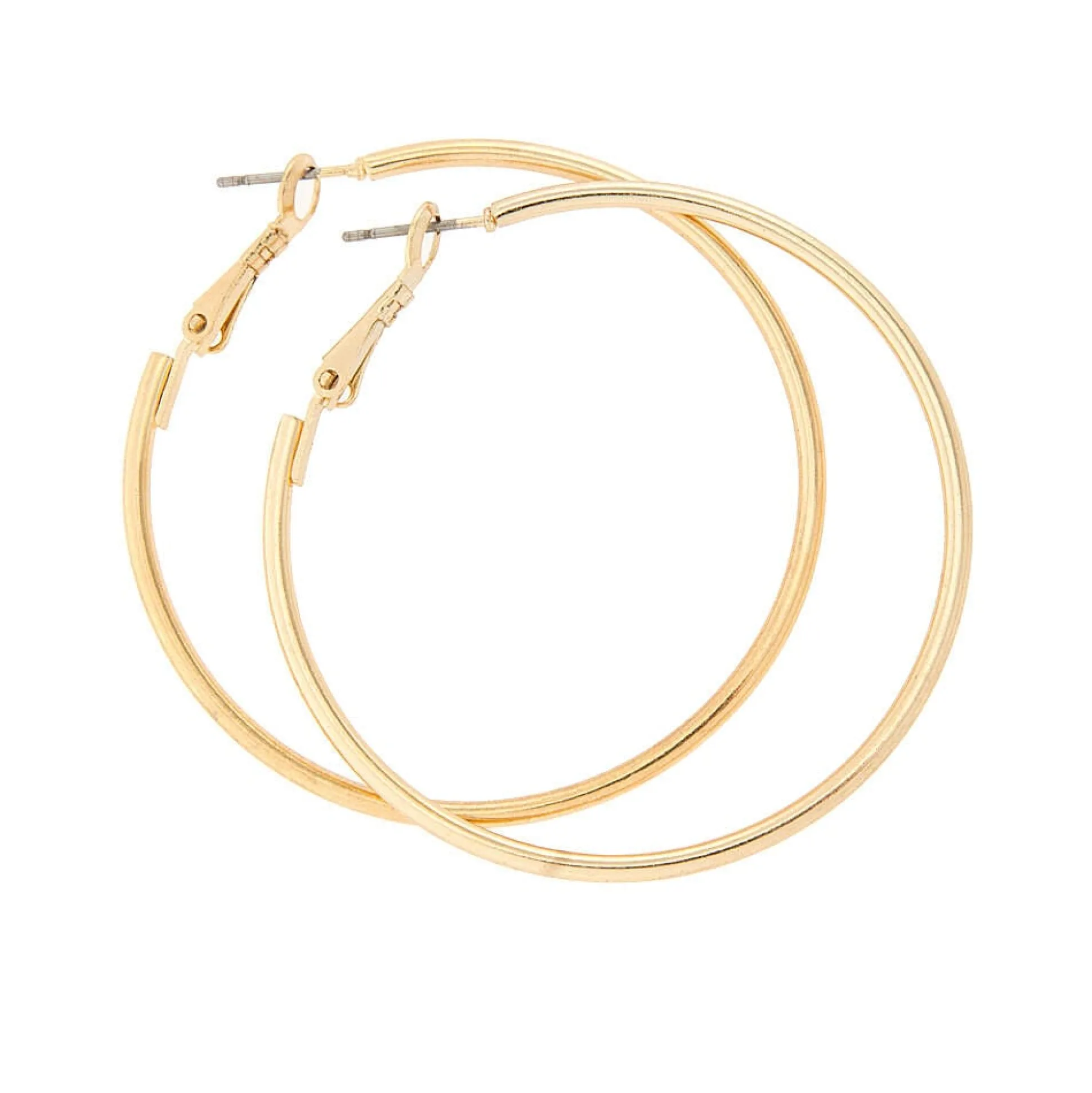 These hoops will be a chic accessory for your outfit. This pair of large gold-tone hoops will go with anything, from a plain white tee to your prettiest dress!