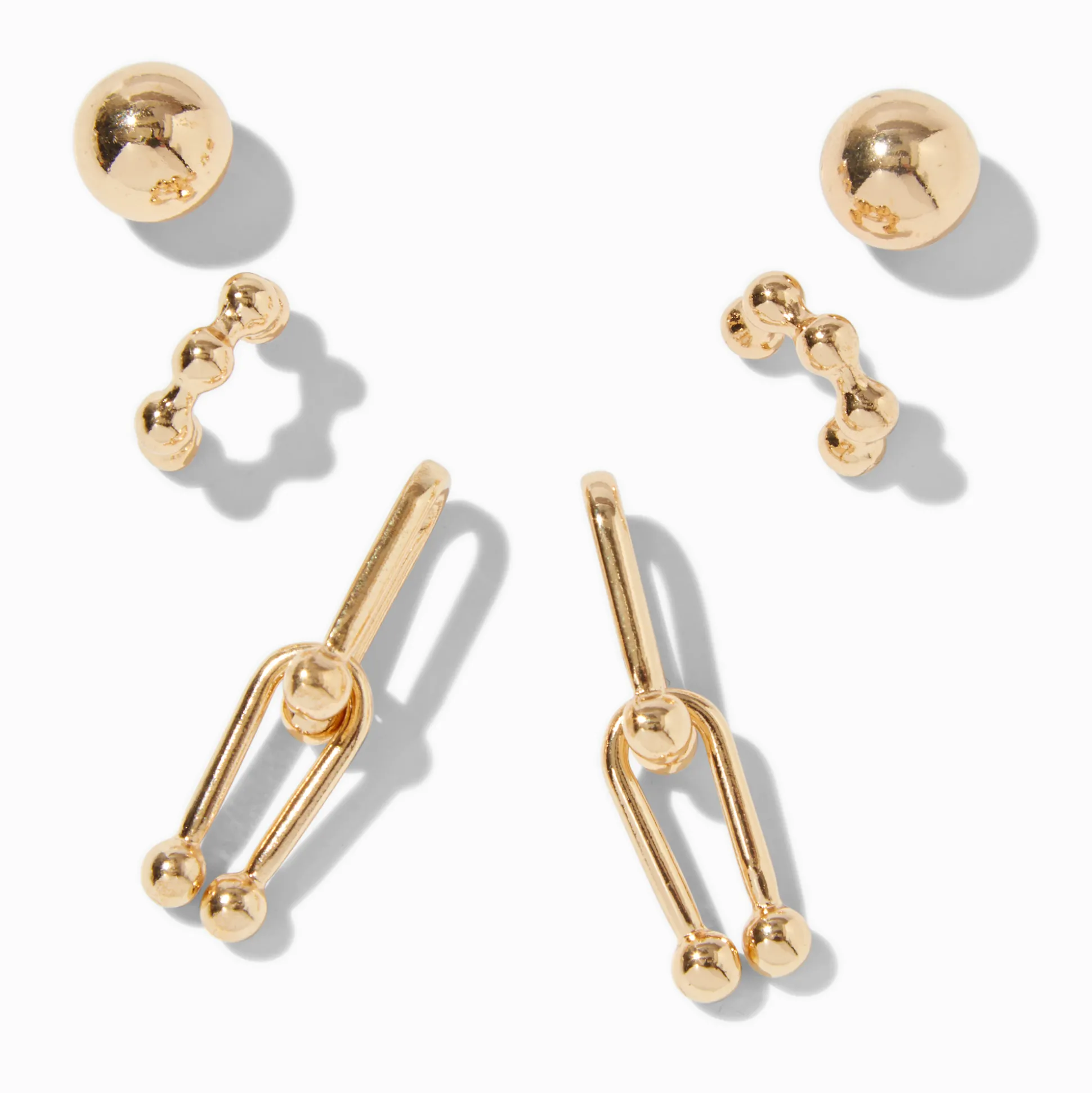 Create a coordinated earring stack with this set. The set includes gold-tone ball studs and drops.