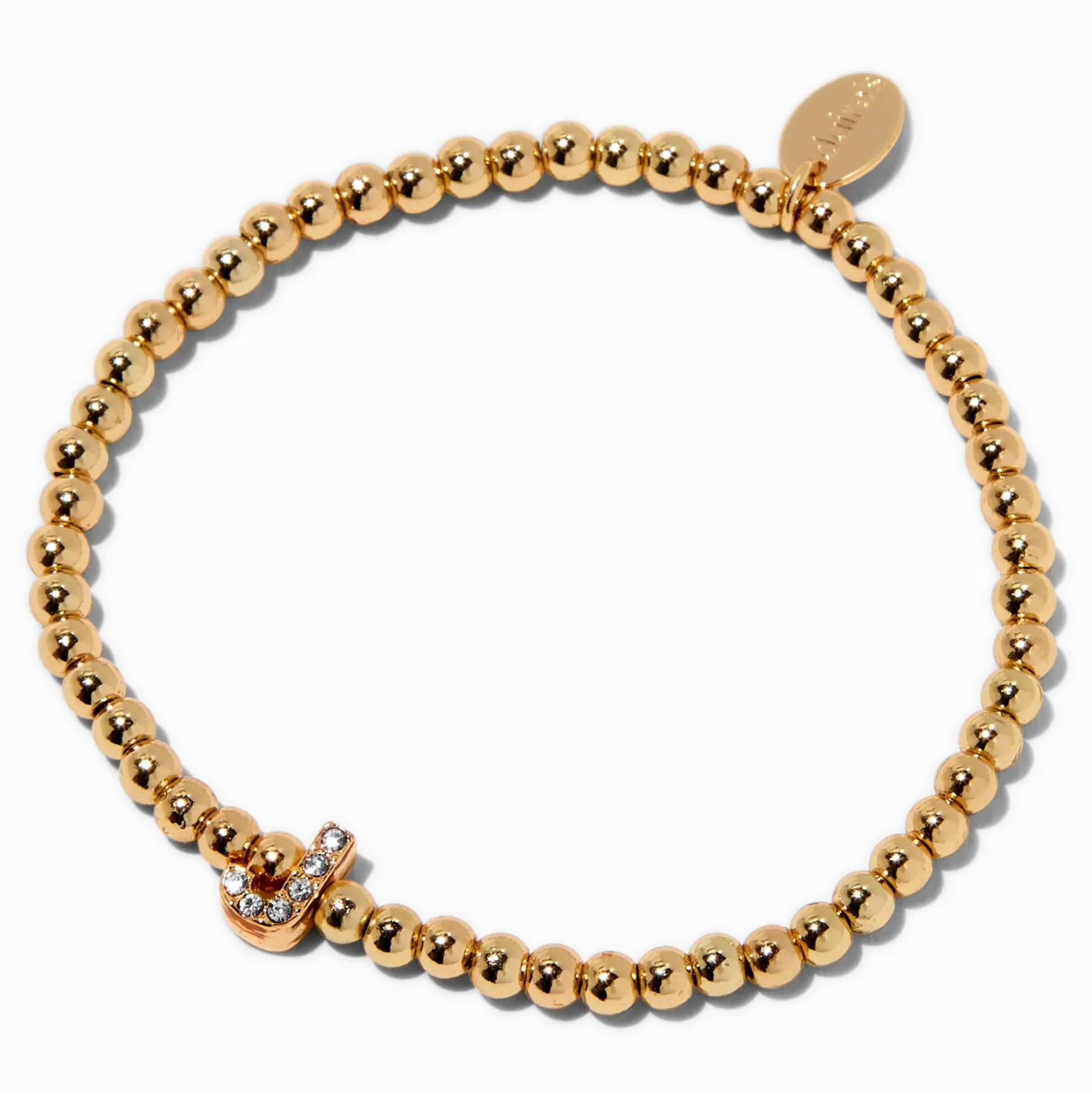Wear your initial with pride! The letter is decorated with pavé faux crystals and strung on a gold-tone beaded bracelet.