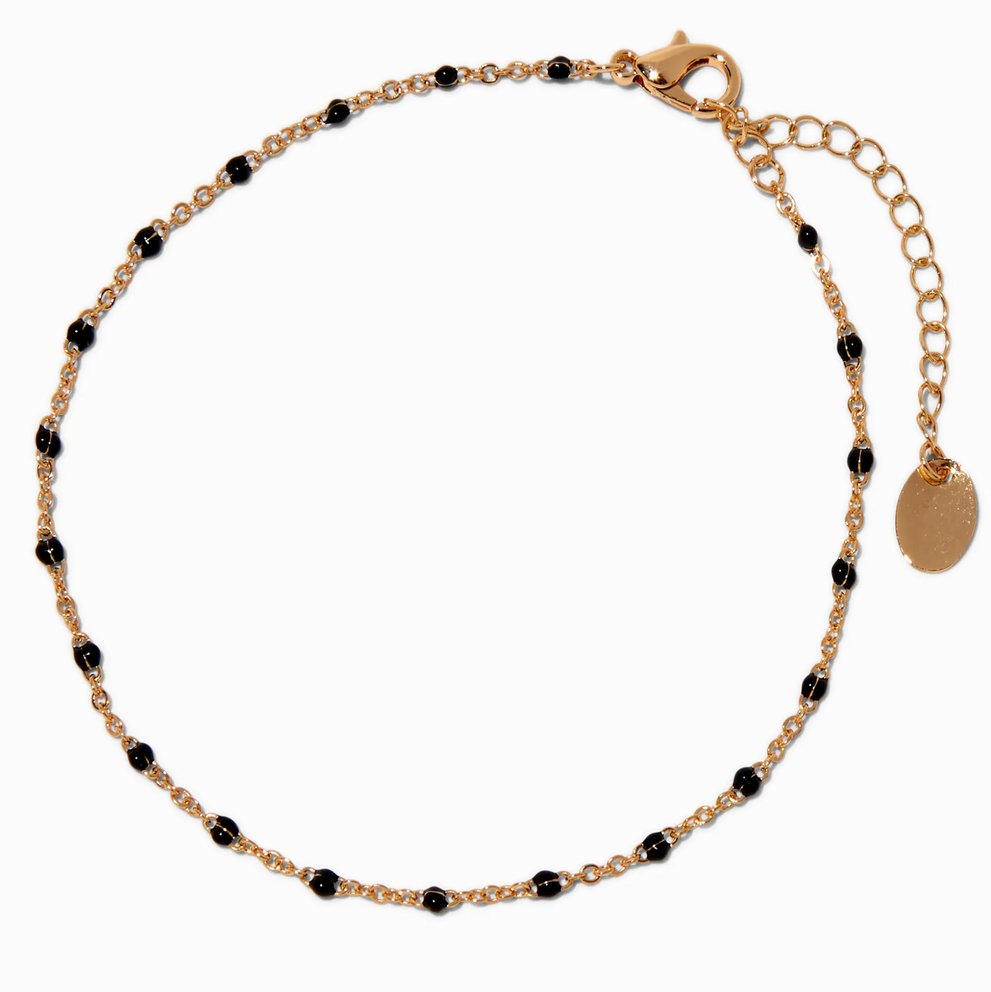 Your summer look isn’t complete until you’re wearing a lovely anklet! This gold-tone chain is covered in equally spaced black beads.