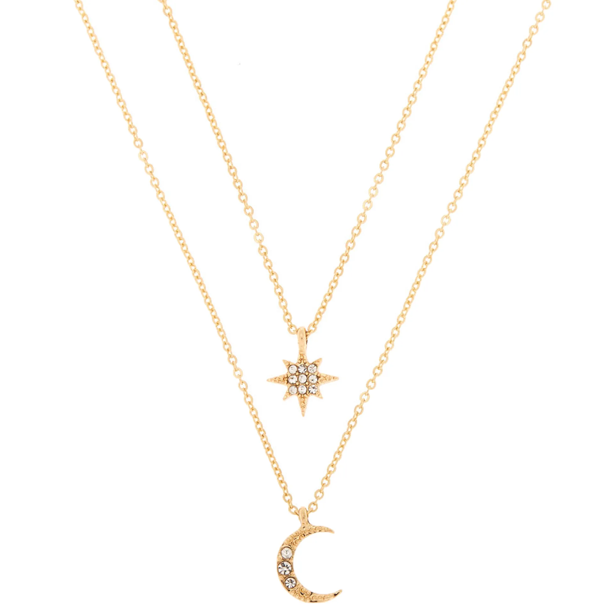 The sun and moon are essential to each other just like how it’s essential to accessorize with this necklace! These gold-tone celestial necklaces features two pendants: a sun and a crescent moon.