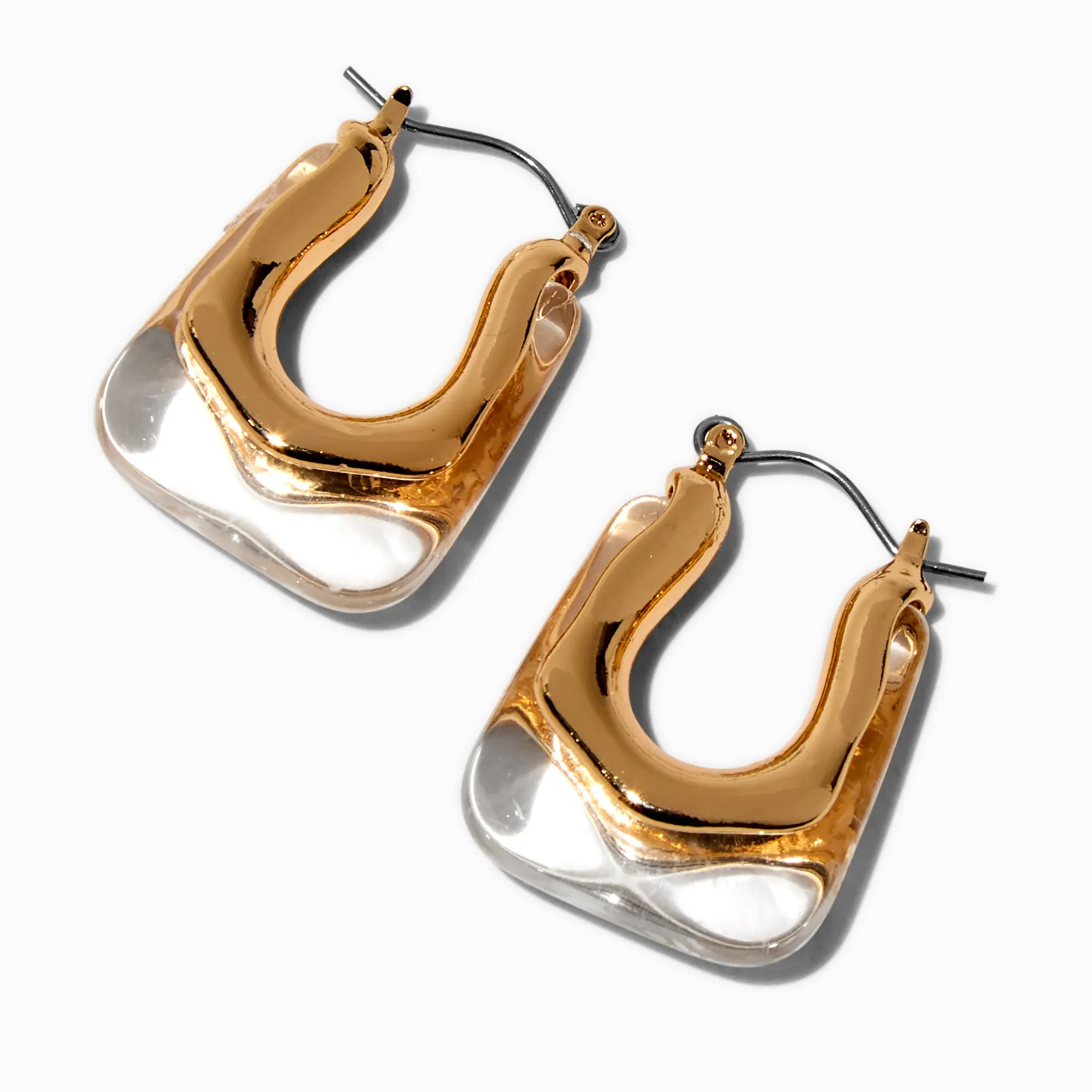 Be the most you in these gold-tone hoop earrings. The hinge-closure earrings have a square shape that’s accented with a clear acrylic edge.