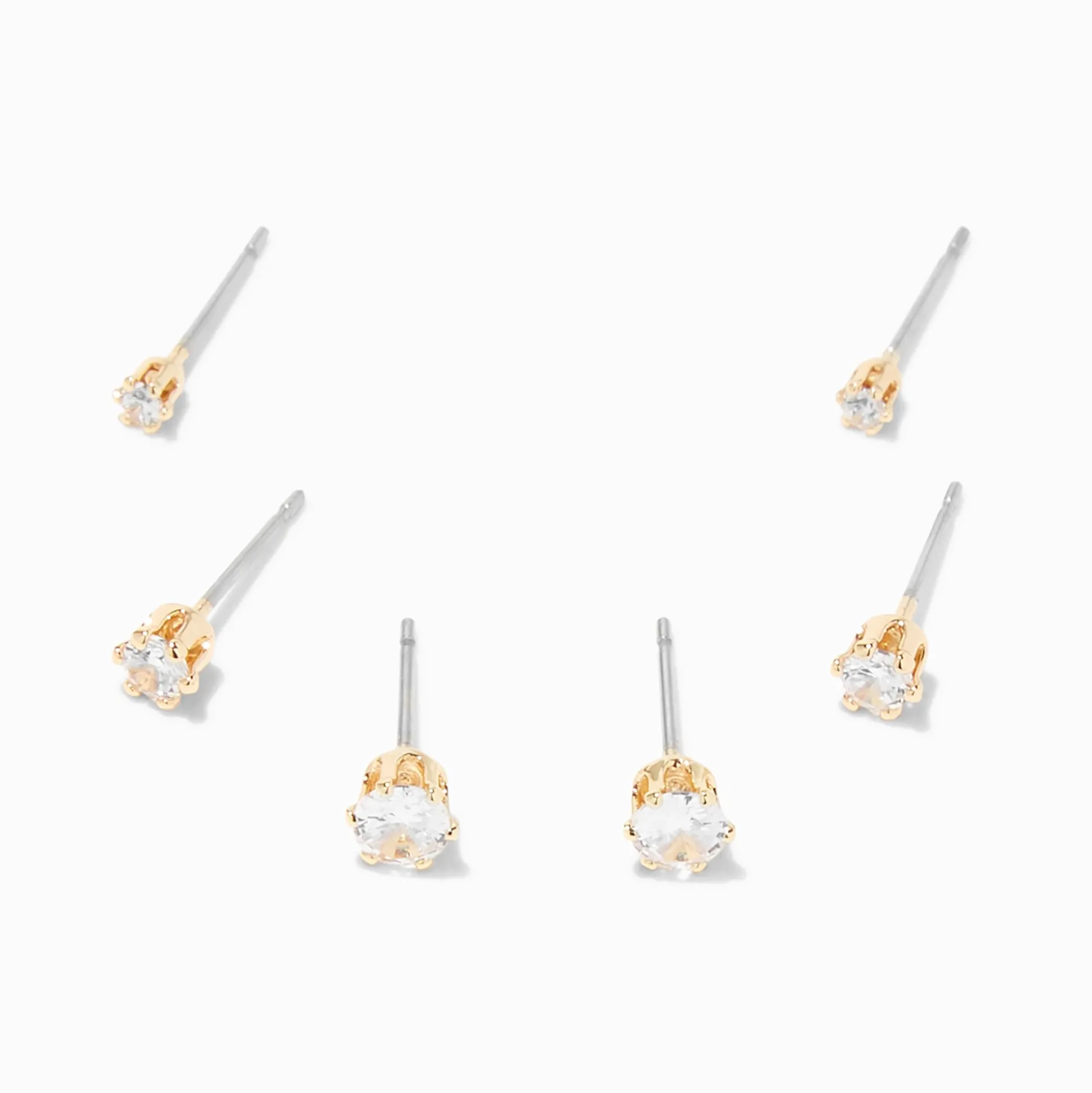 Tons of sparkle is coming your way with these beautiful stud earrings. You’ll enjoy 3 pairs of gold-tone earrings set with 3 different sizes of round cubic zirconias so you can choose your level of bling.