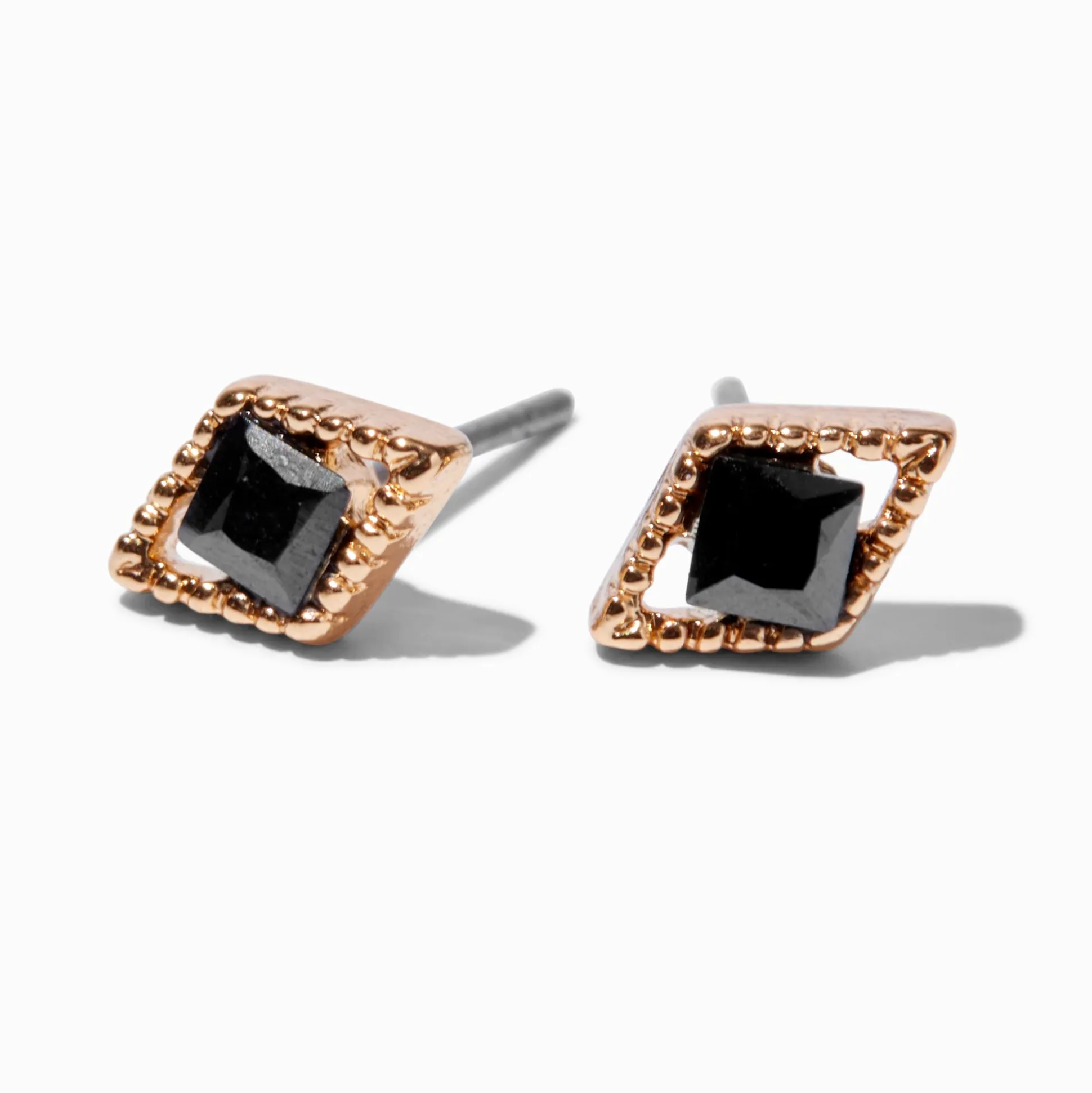 Add geometric flair to your earscape with these gold-tone studs. The diamond-shaped designs have a diamond-shaped black cubic zirconia detail.