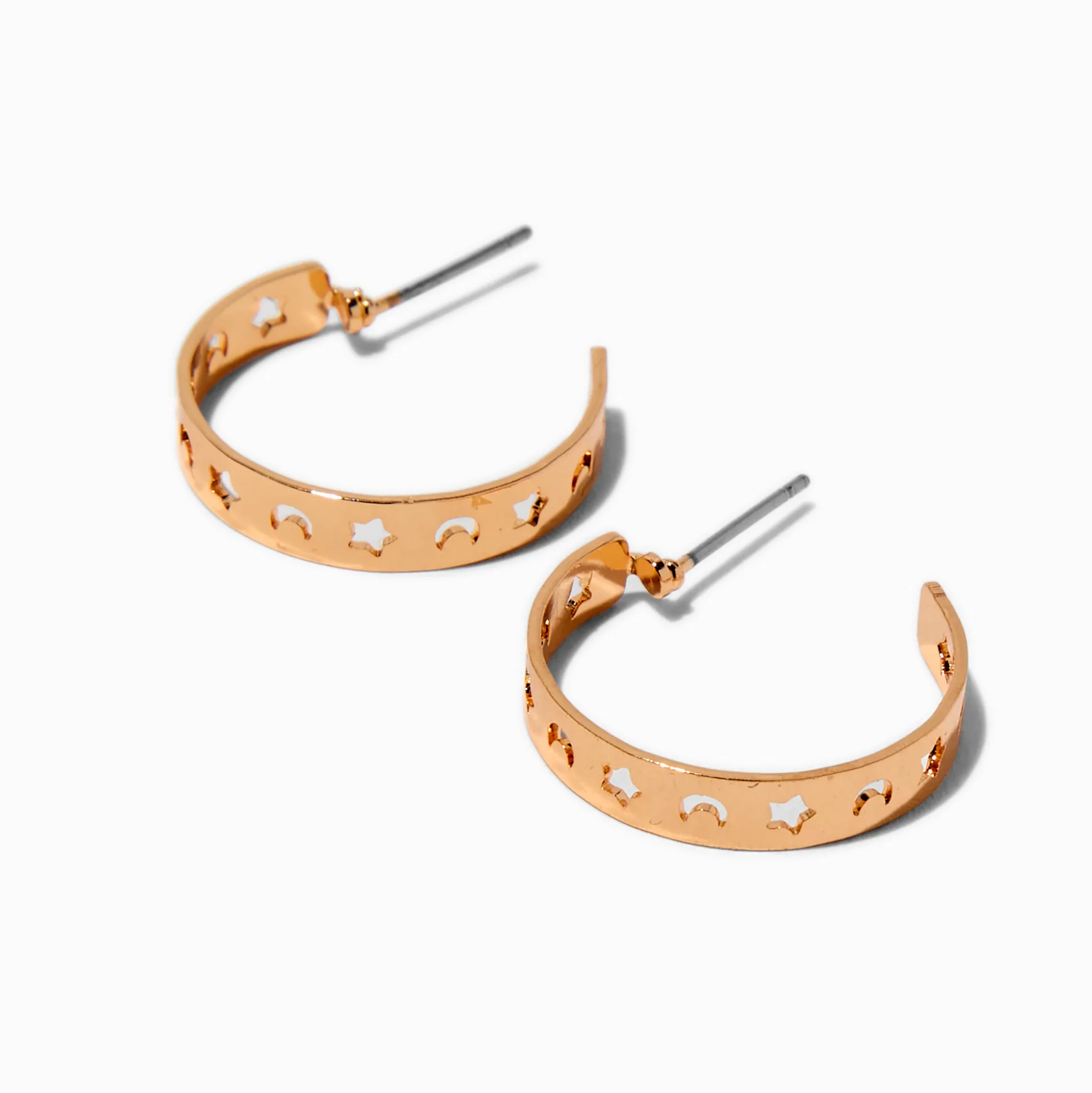 Be the most celestial you in these half hoop earrings. The gold-tone designs have star & moon cut-outs and are the perfect finishing touch to your fave fits.