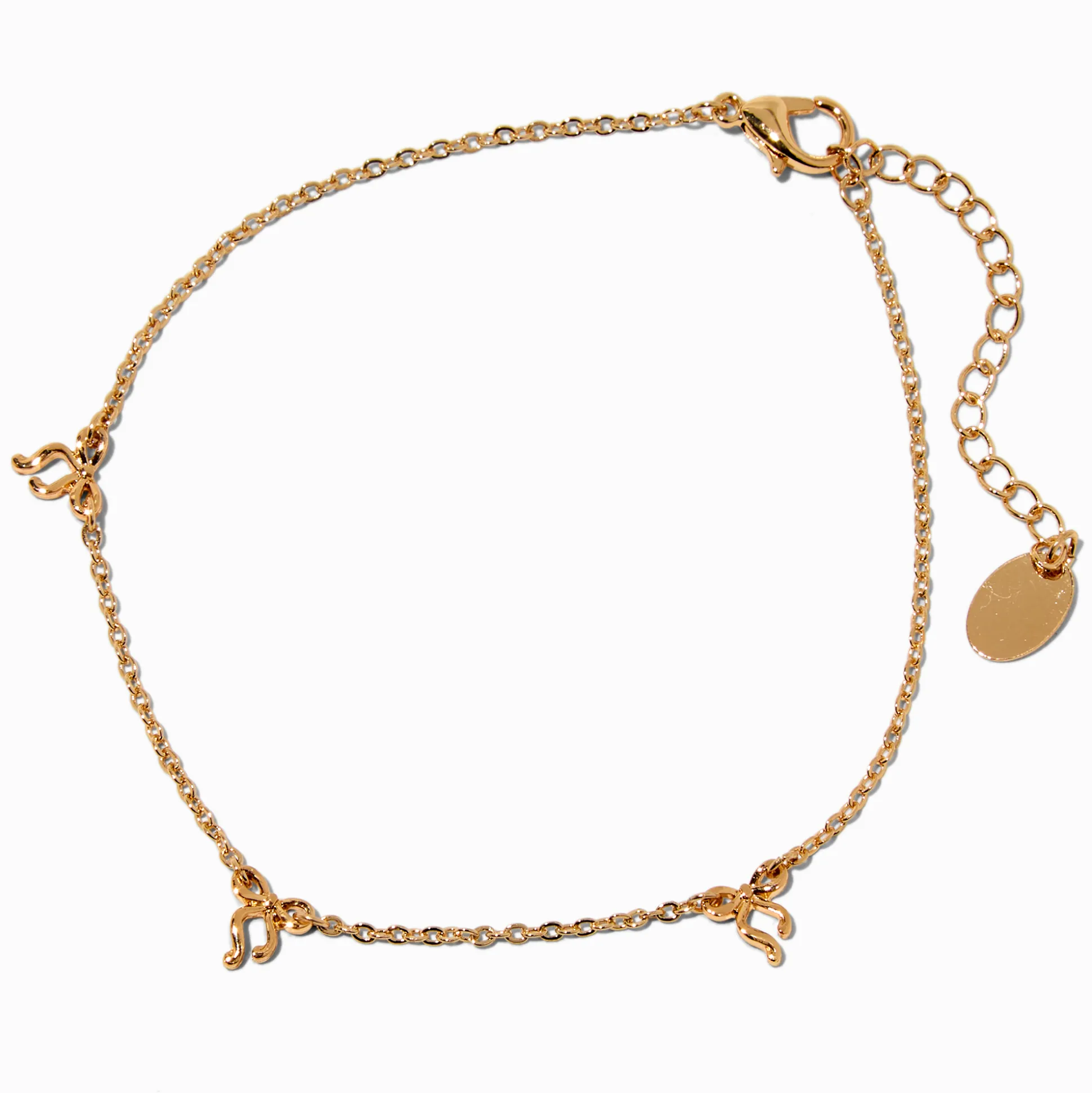 Your summer look isn’t complete until you’re wearing a lovely anklet! This gold-tone chain is covered in equally spaced bows.