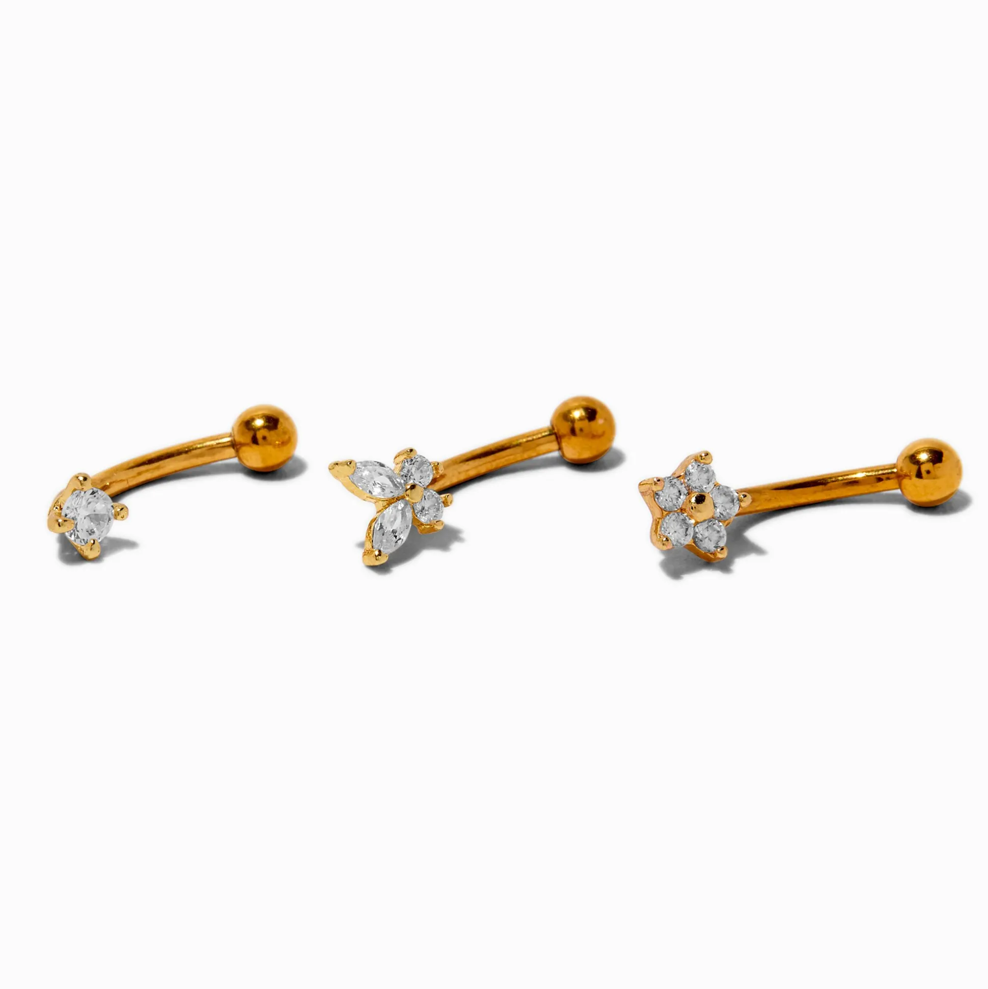 Accessorize your ears with these earrings! Featuring 3 different gold-tone rook earrings, this pack includes cubic zirconia details.