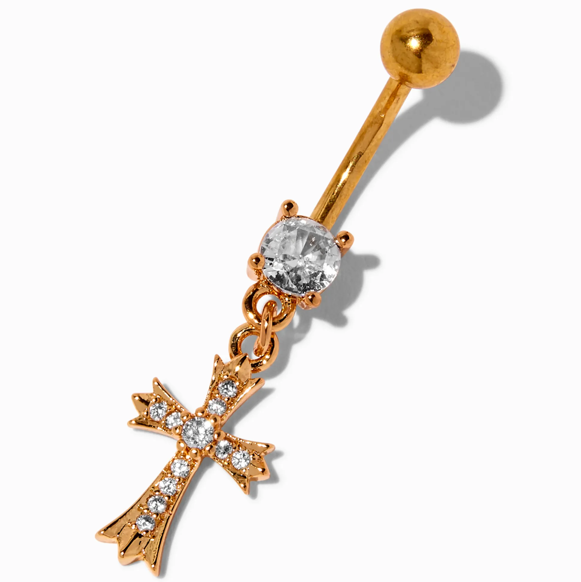 This gold-tone belly ring is the exact vibe you’re looking for. The stainless steel design is decorated with real cubic zirconias and has a gothic cross design.