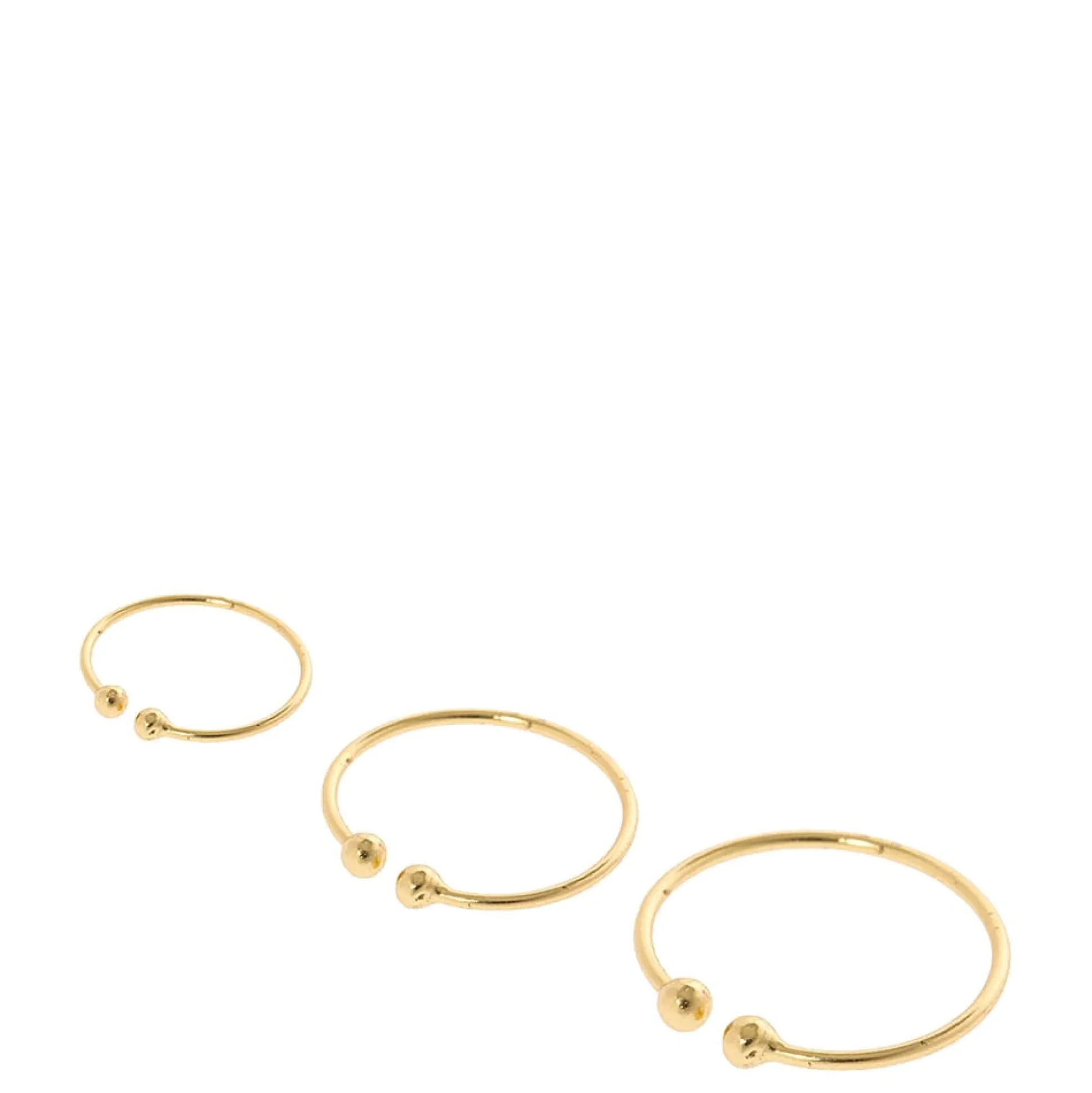 Adapt an alternative look when the mood strikes you with these small, medium and large gold faux nose hoops.