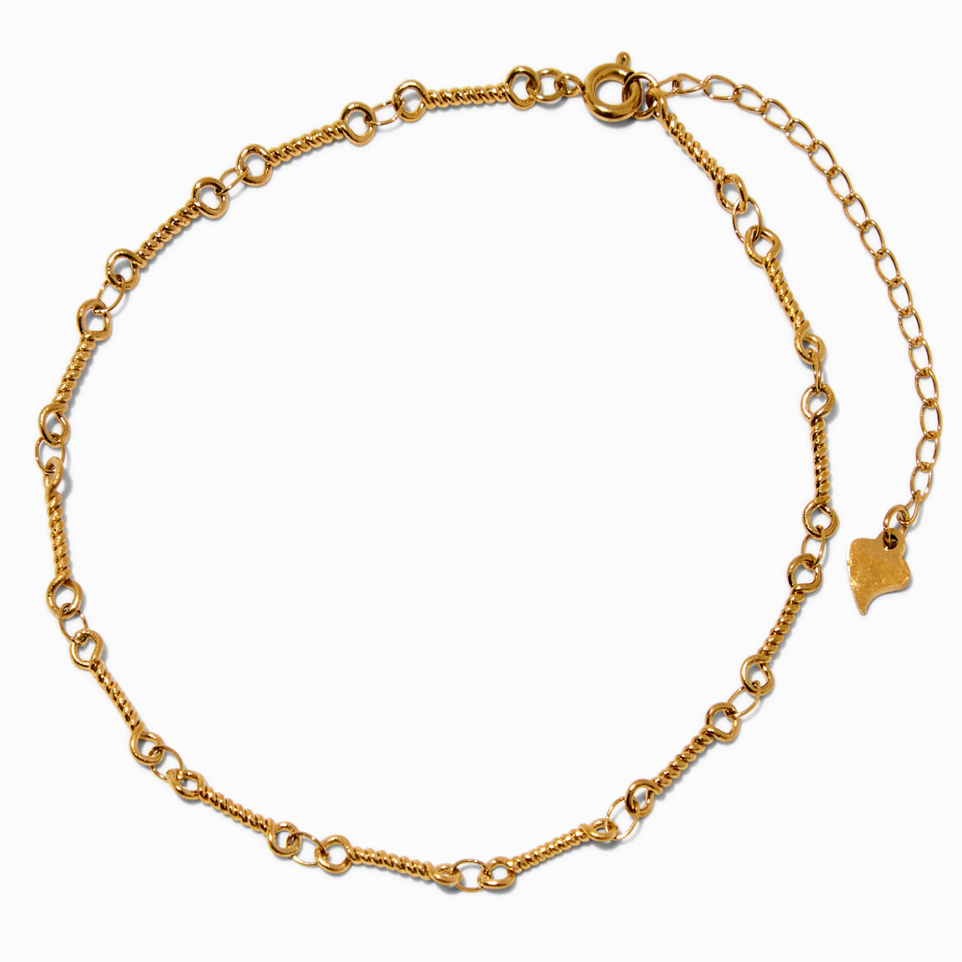 Your summer look isn’t complete until you’re wearing a lovely anklet! This gold-tone chain is made from durable stainless steel and has notched details.