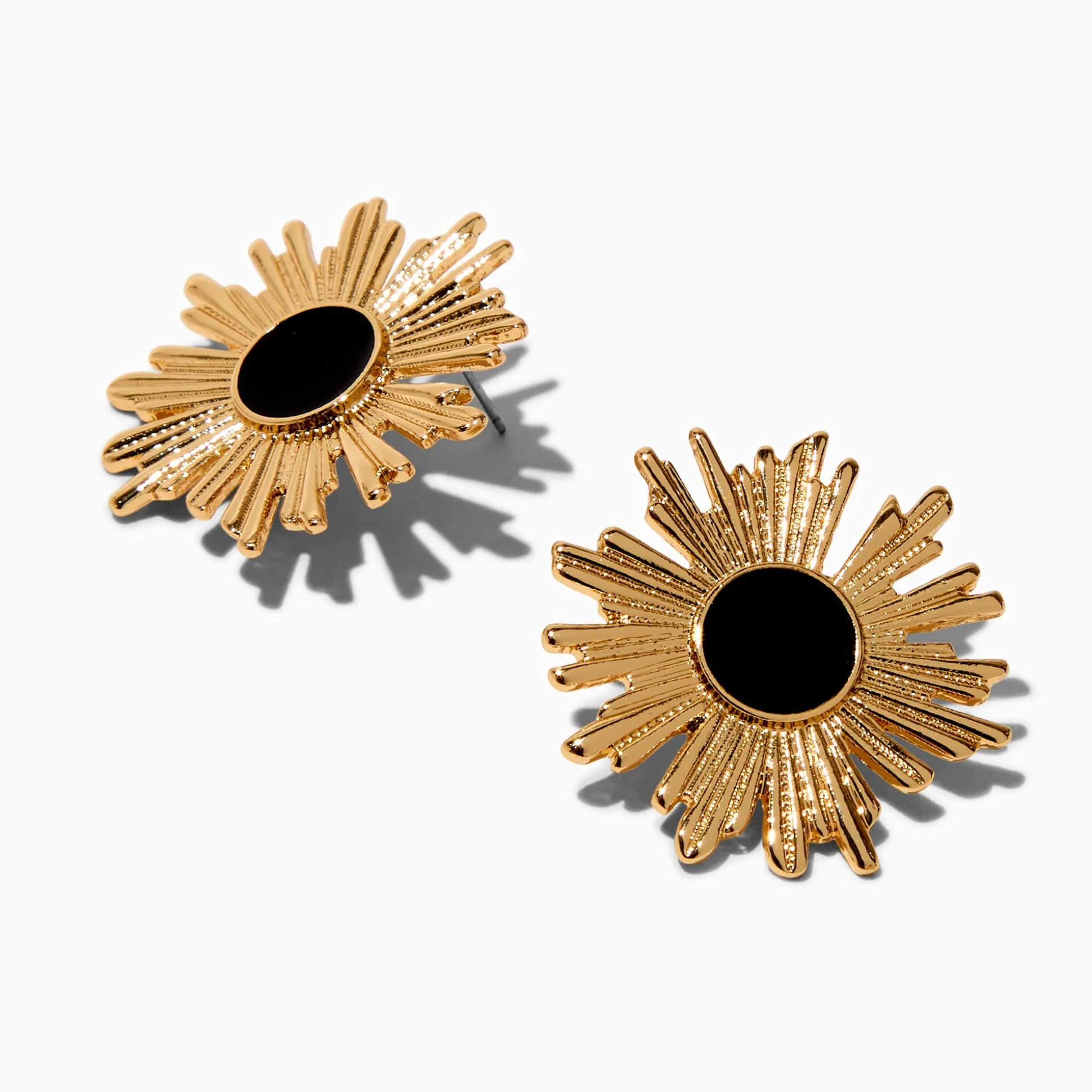 Complete your look with these easy stud earrings. The gold-tone designs have a starburst and black enamel details.