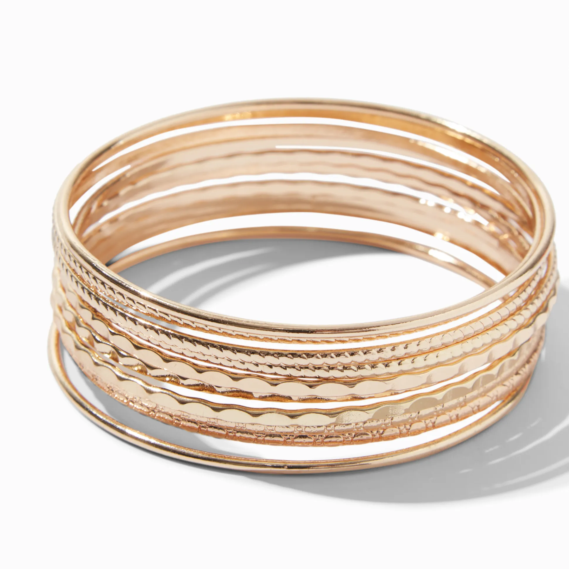 Add some glitz and glamour to your wrist with these textured gold-tone bangles. These bangles come in an 10-pack, so you can mix and match based on your look.