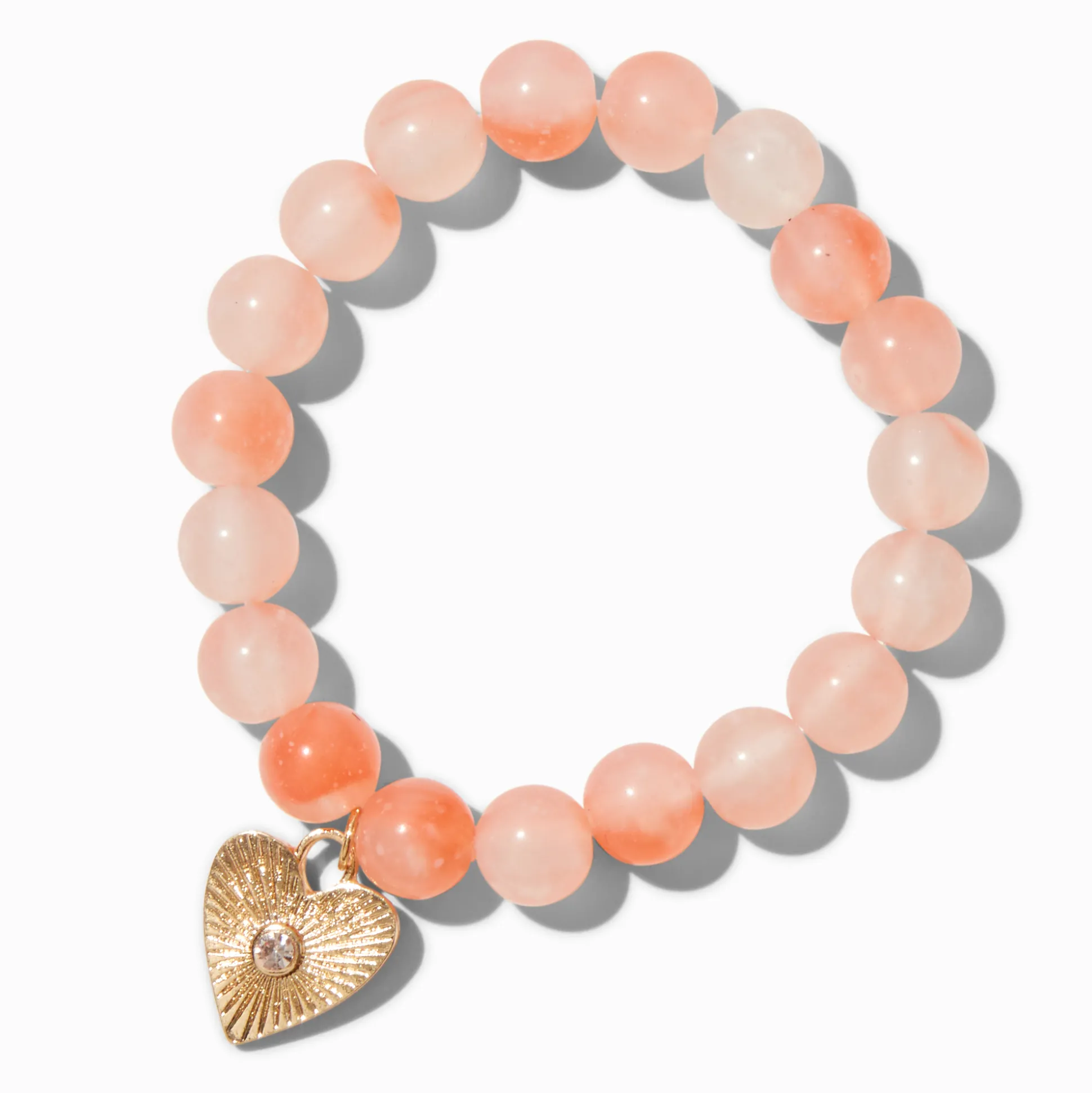 Such a lovable accessory for your collection! The coral marbled stretch bracelet is adorned with the cutest little heart charm!