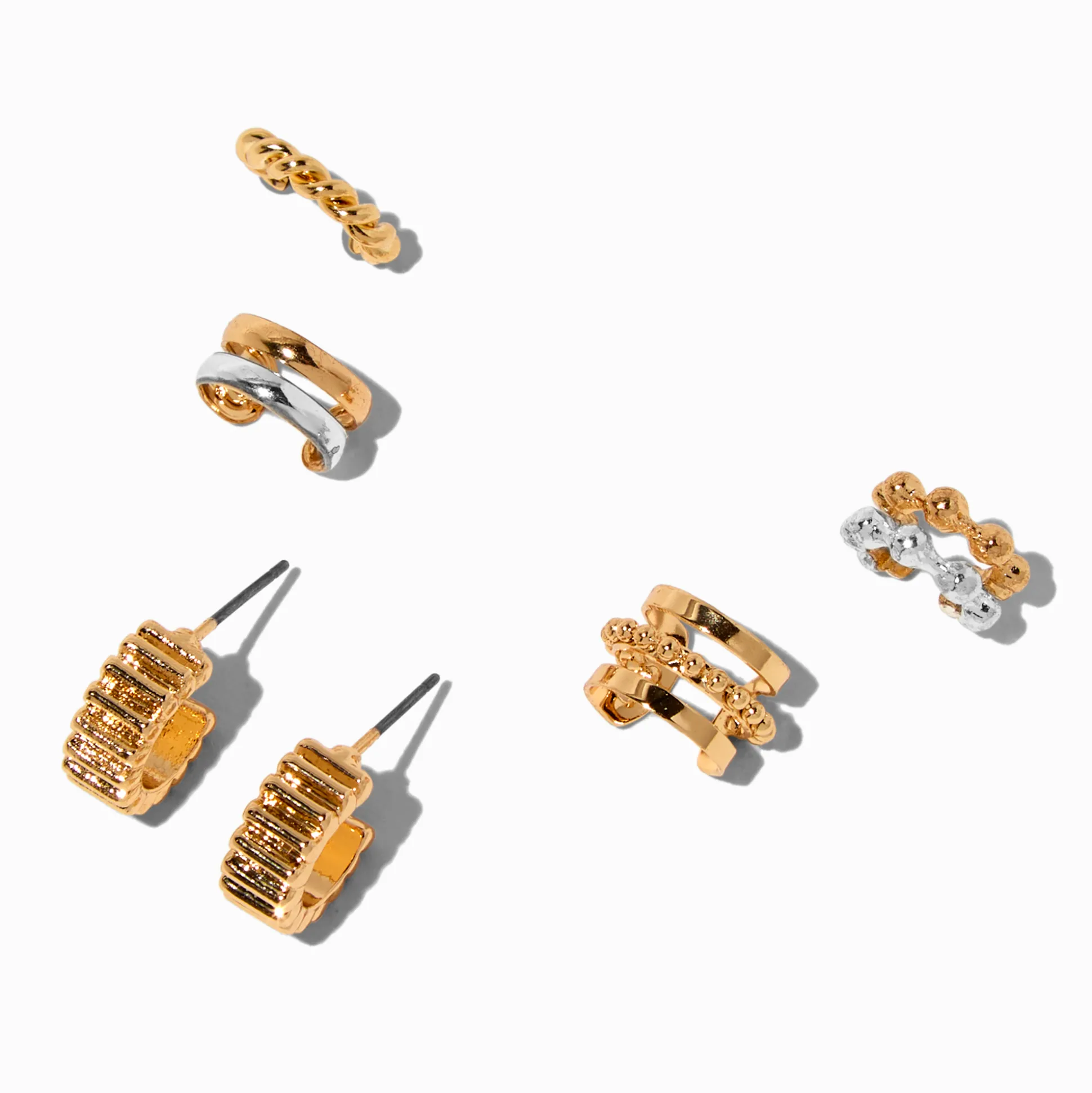 Add some flair to your ear party with this hoop & ear cuff stack. The stack features textured designs that will stick out on your earscape.