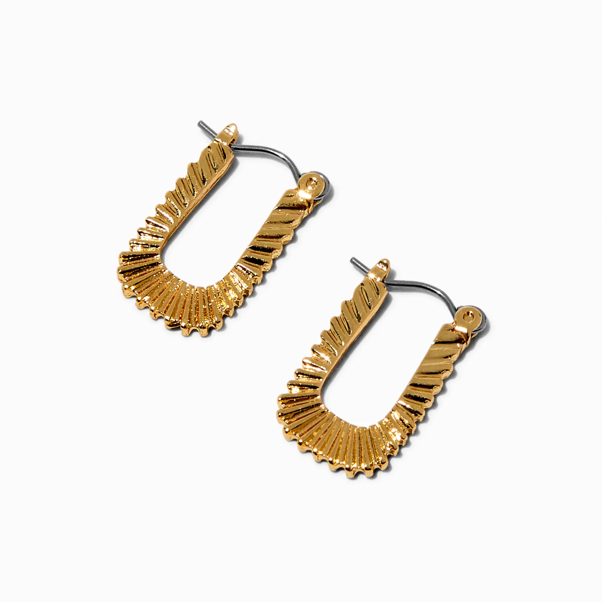 These hoops will be a chic accessory for your outfit. These rectangular hoops are accented by a textured design.