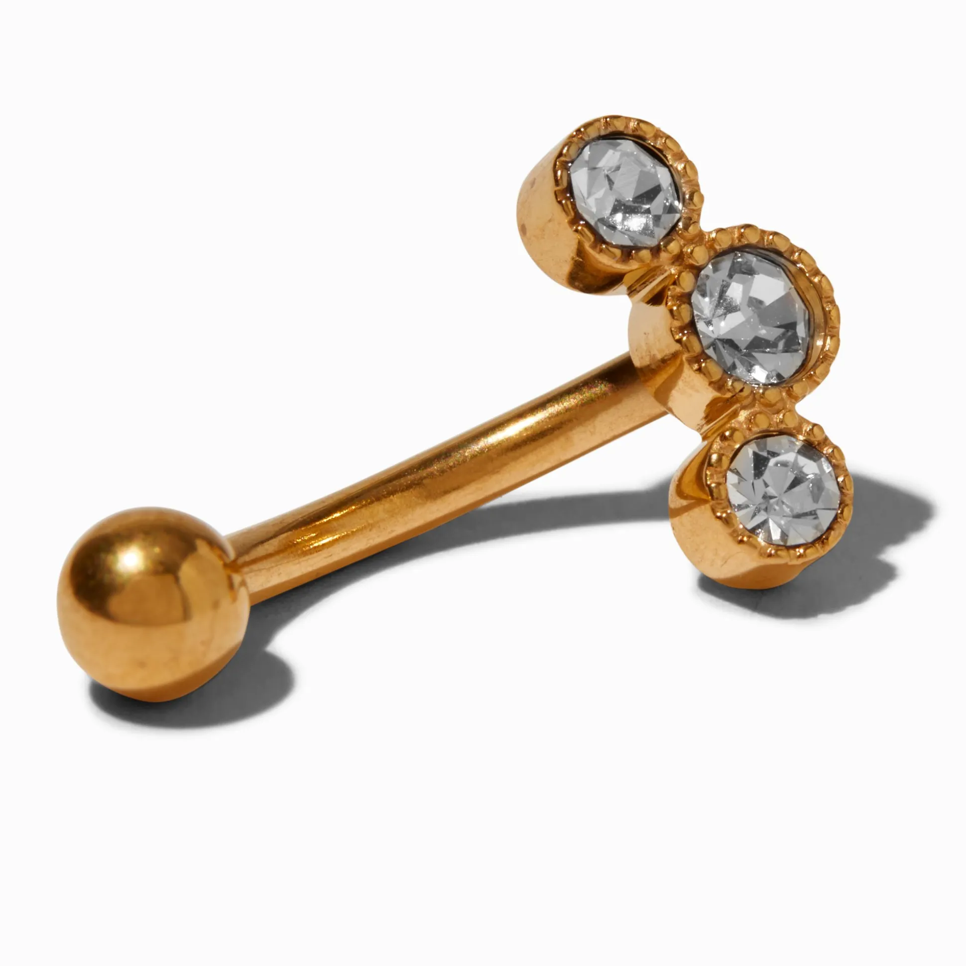 Gold-tone Titanium Cubic Zirconia Triple 14G Belly Bar