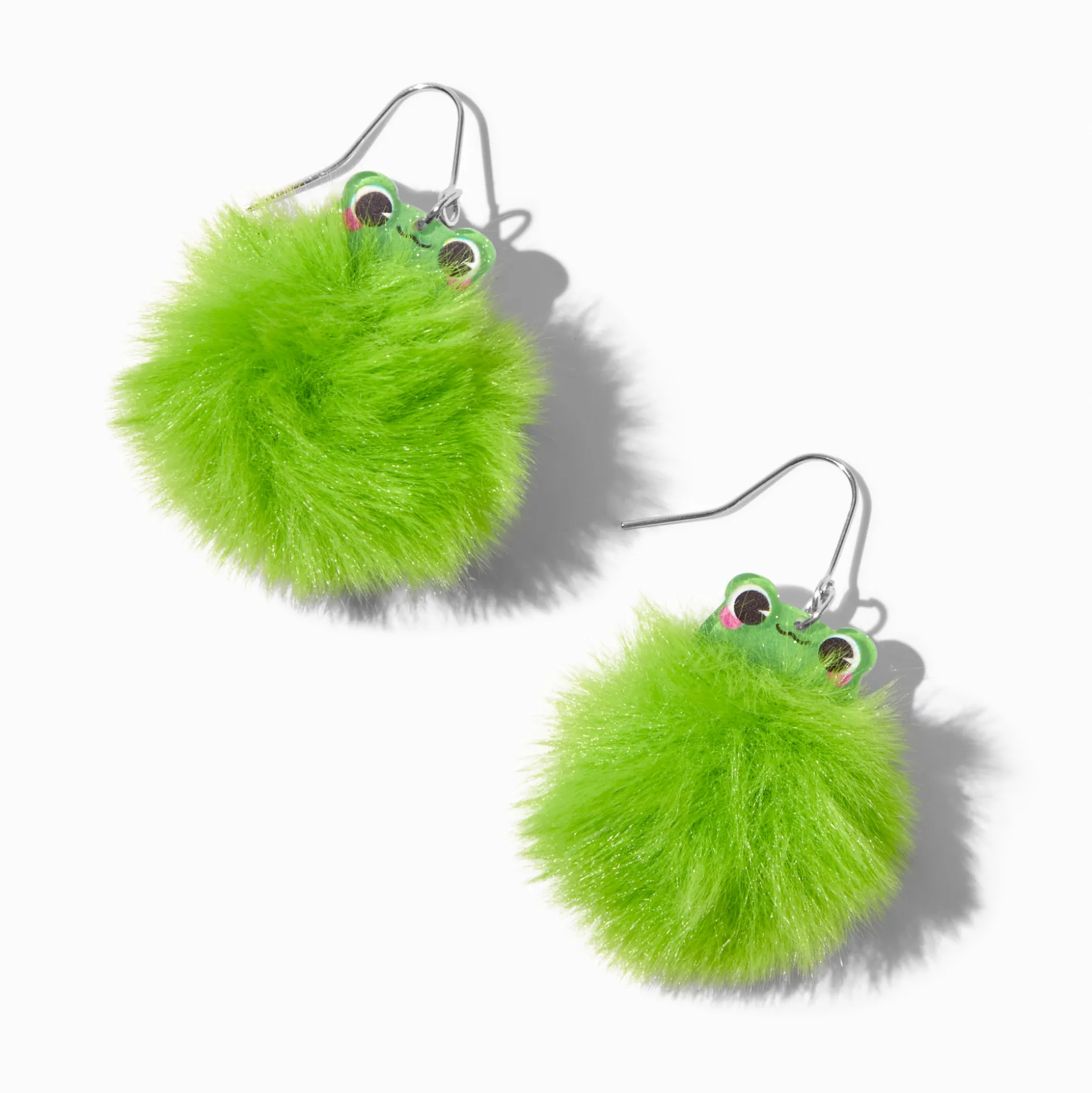 You’ll look froggy cute in these pom pom drop earrings. The silver-tone fish hook closures have green pom pom designs that are decorated like a new frog friend.