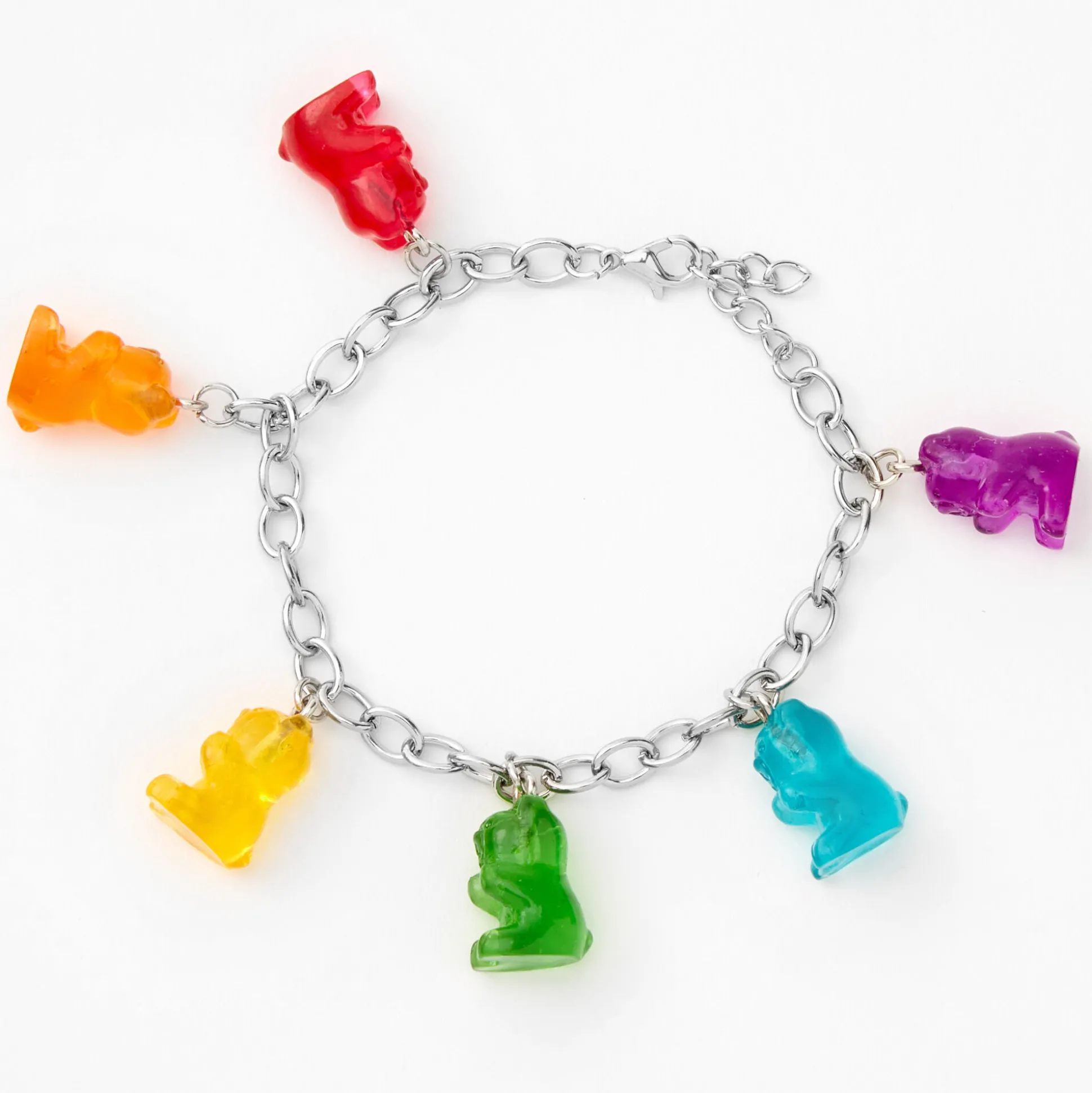 Rainbow colored Gummy Bears® add a sweet and fun touch to this silver-tone charm bracelet.