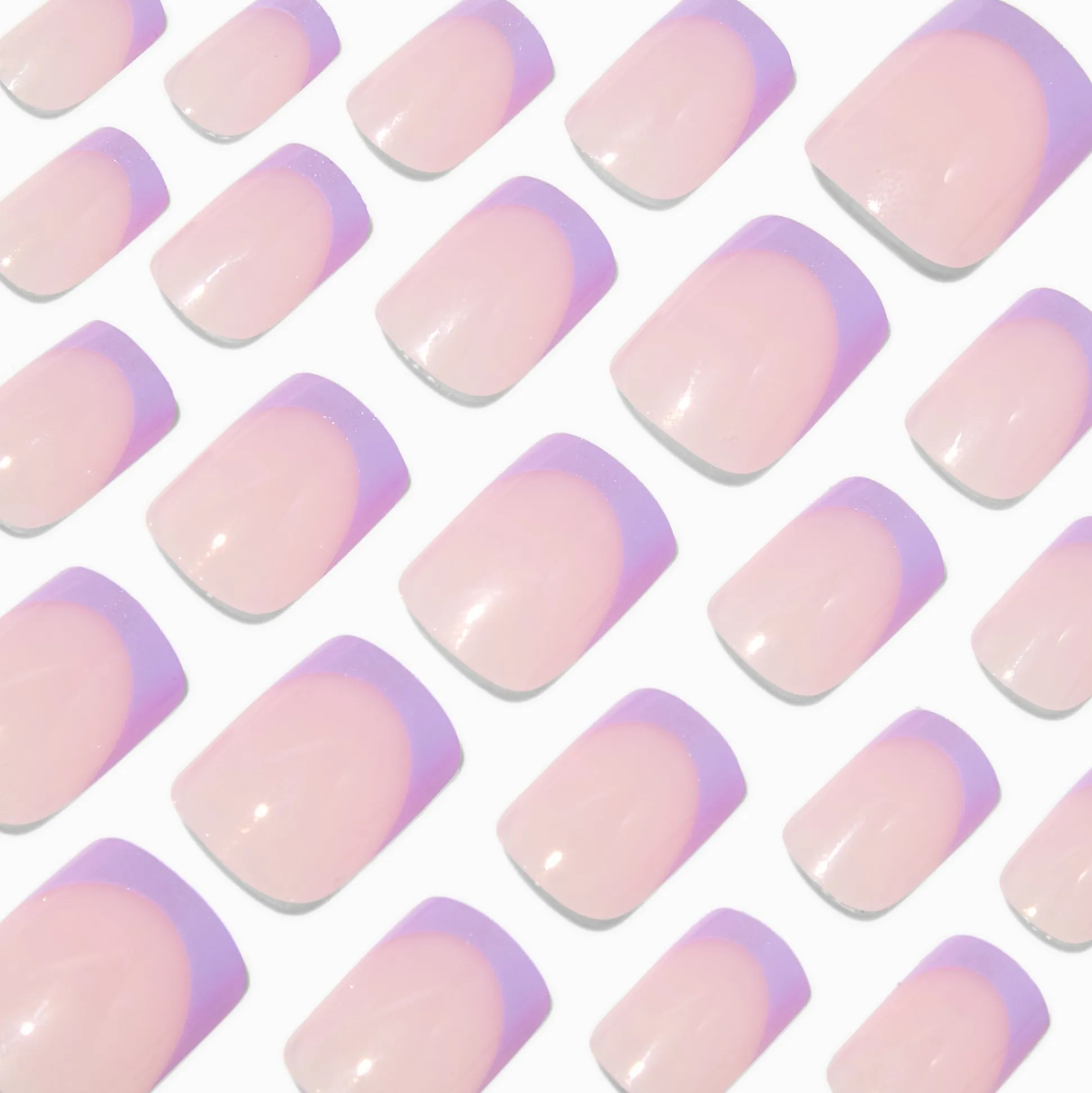 Holographic Purple French Tip Medium Square Vegan Faux Nail Set - 24 Pack