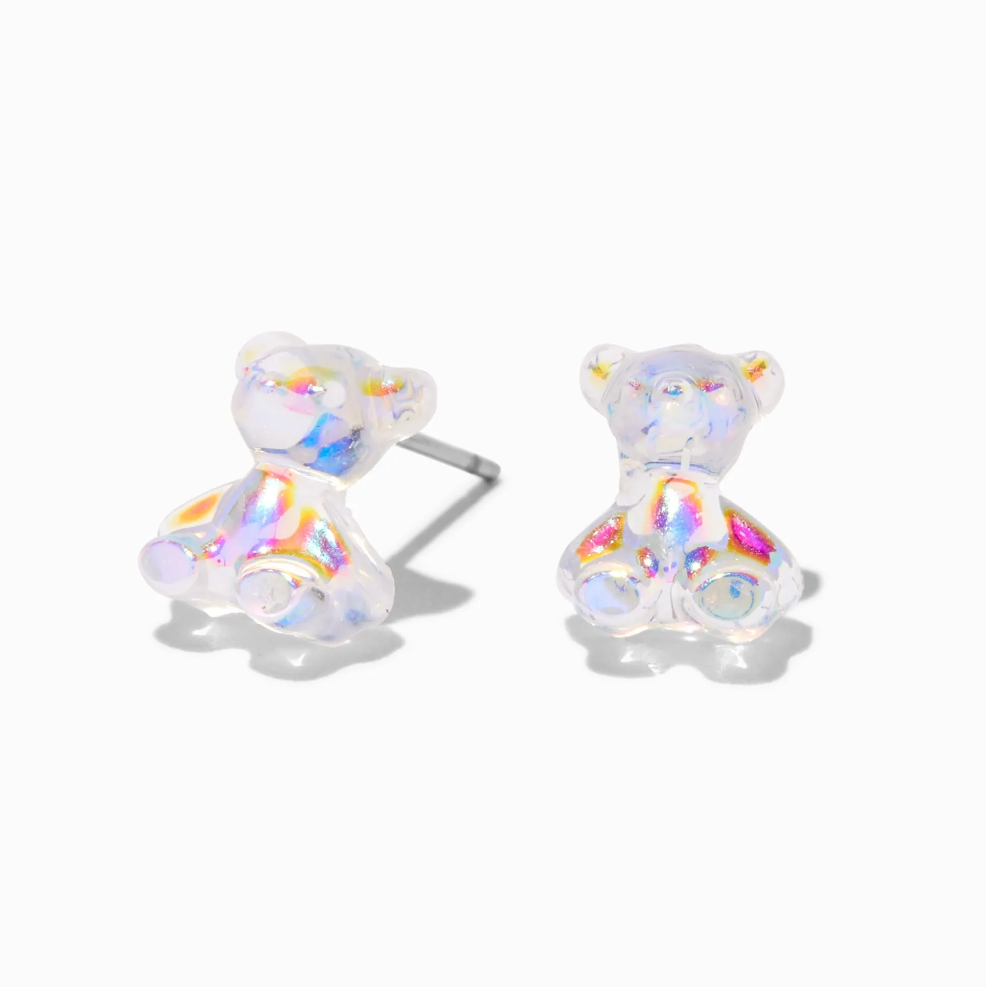 Be the most you in these easy stud earrings. They have adorable teddy bear shapes that are finished with shiny holographic finish.