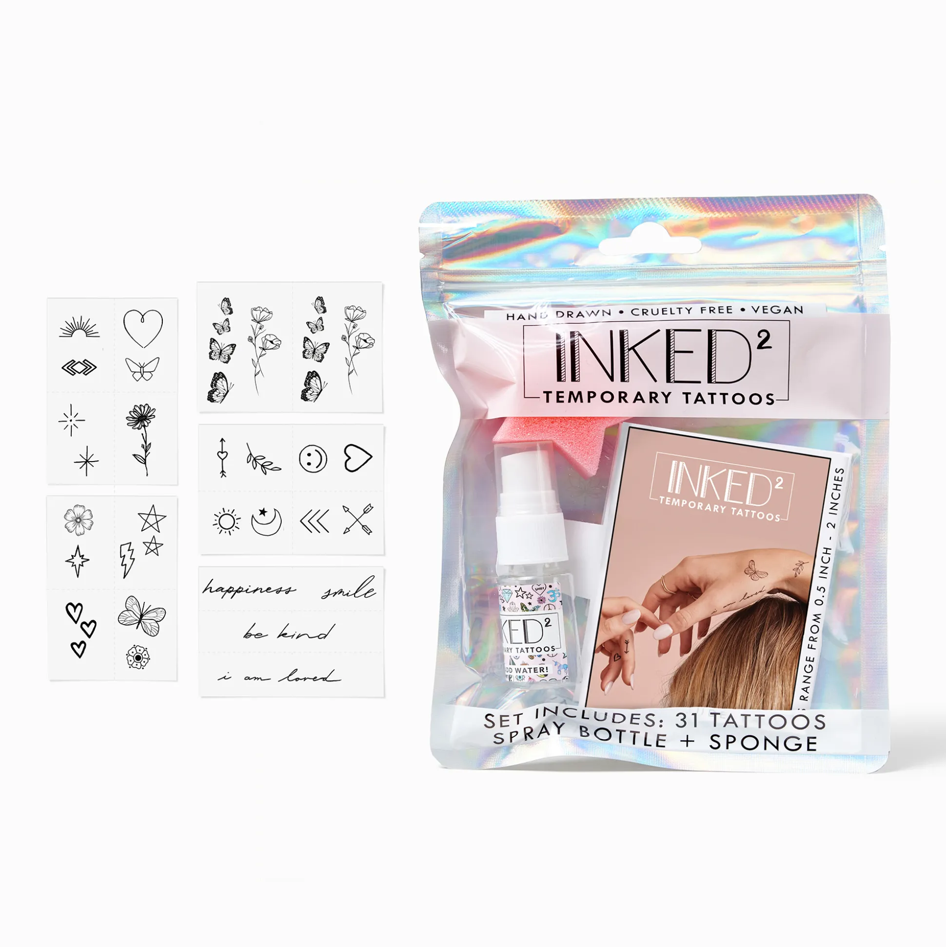 How To: Ensure the skin is completely dry and free of oils or lotions before application for best results. Cut out your fave INKED design. Peel off the plastic top sheet, place and press the tattoo face down, and wet the tattoo paper with water until it is completely soaked through. Press and hold down in place for a few seconds, then gently peel up paper to reveal your INKED!
