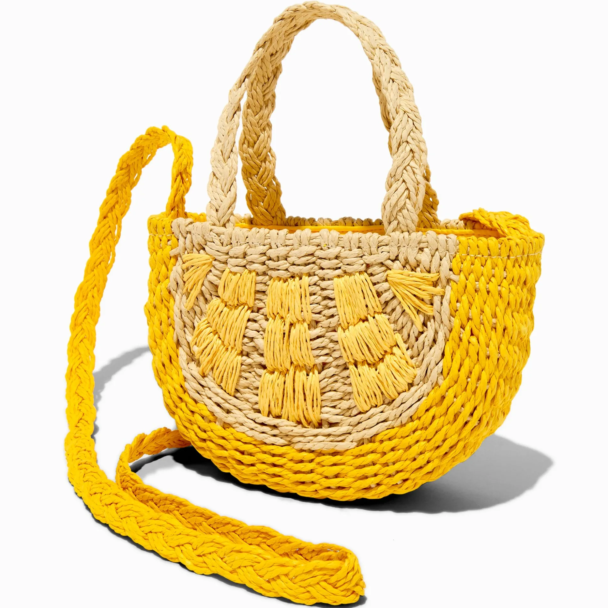 Fashion meets function with this summer-ready bag. Inspired by a lip-puckering lemon slice, you choose whether to wear it crossbody style or to carry it by the woven handle! The shoulder strap adjusts easily to fit. There’s room inside for the small essentials you’ll need for a day of shopping or a picnic.