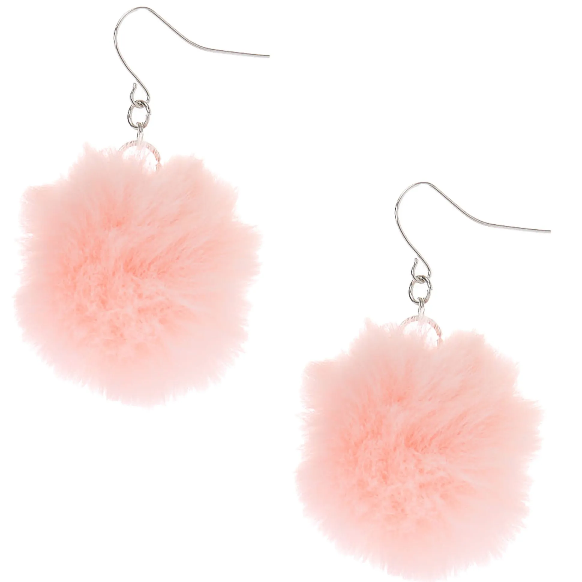 Add a pretty pink touch to your look! These super girly drop earrings feature a light pink pom pom ball dangling from each earring.