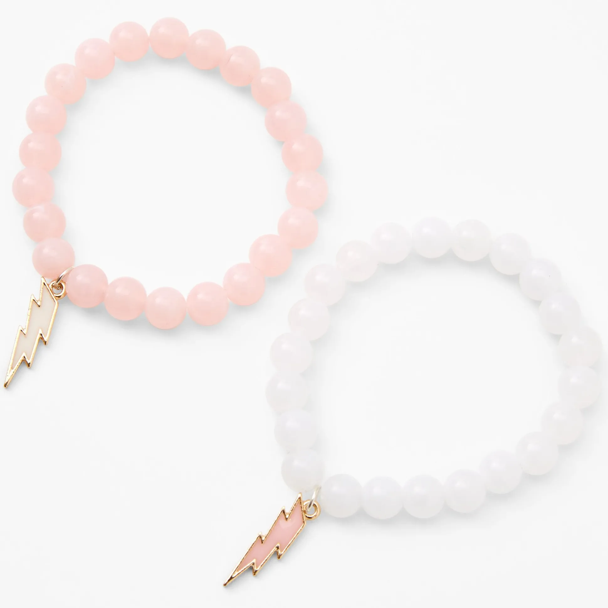 Wear them together, wear them one at a time, or share one with a friend! The lightning bolt is a symbol of power, so these bracelets are perfect for those days when you want to make a powerful impression on all you meet. They stretch to fit, and each has a dainty lightning bolt charm that glows in the dark when exposed to light.