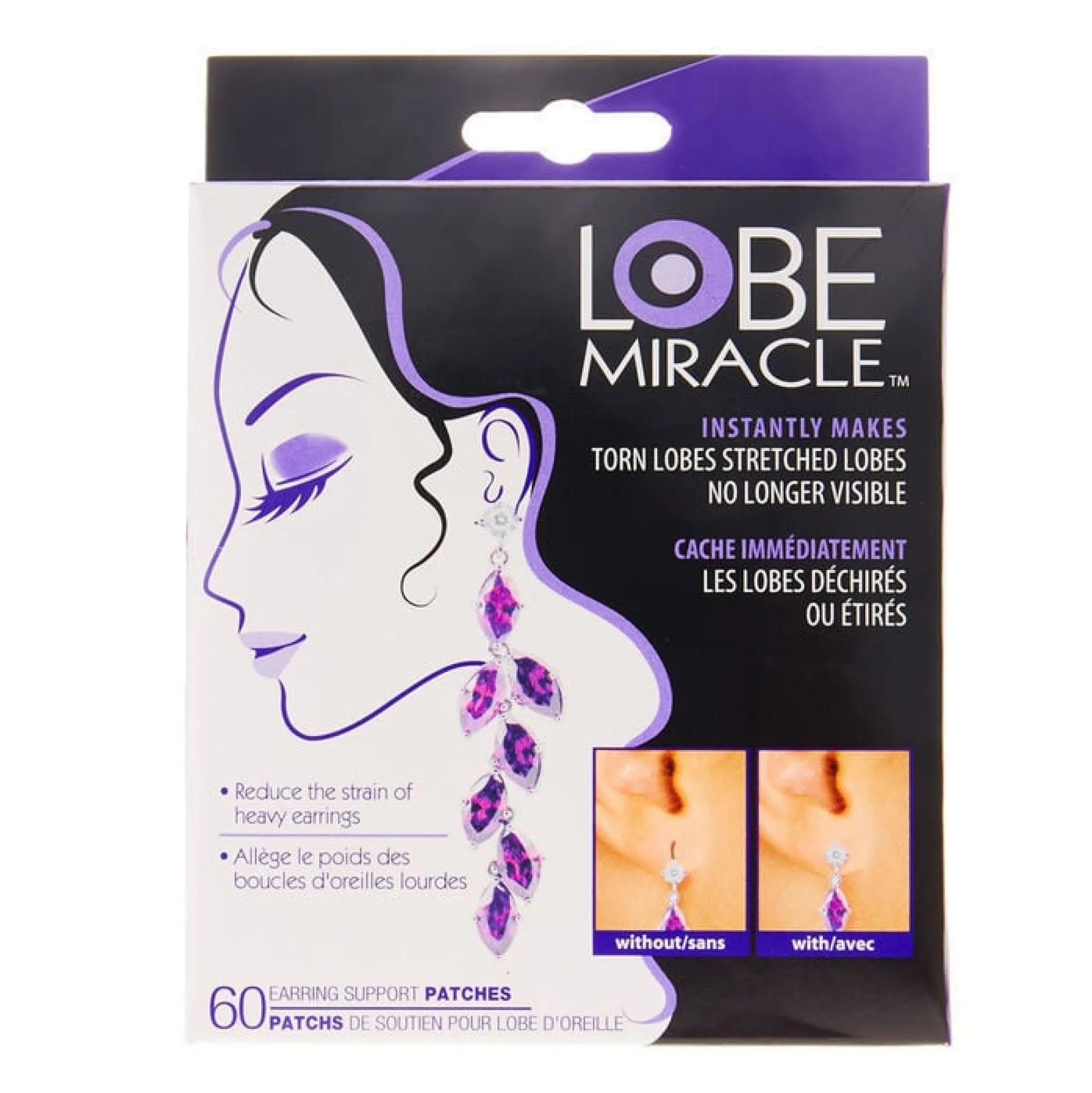 Stretched out or torn ear lobes are no longer an issue with these earring support patches by Lobe Wonder. Helps prevent future tears from earrings that are too heavy as well. Contains 60 patches.