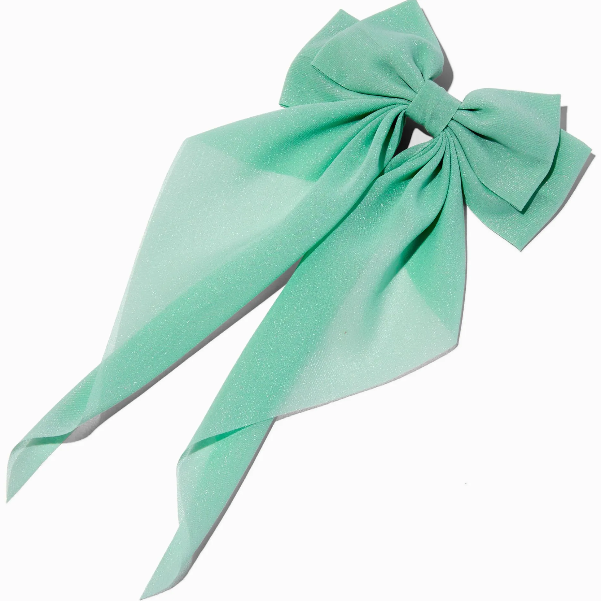 A classic hair bow dresses up any outfit instantly! This sheer beauty has long, flowing tails that add a bit of drama.