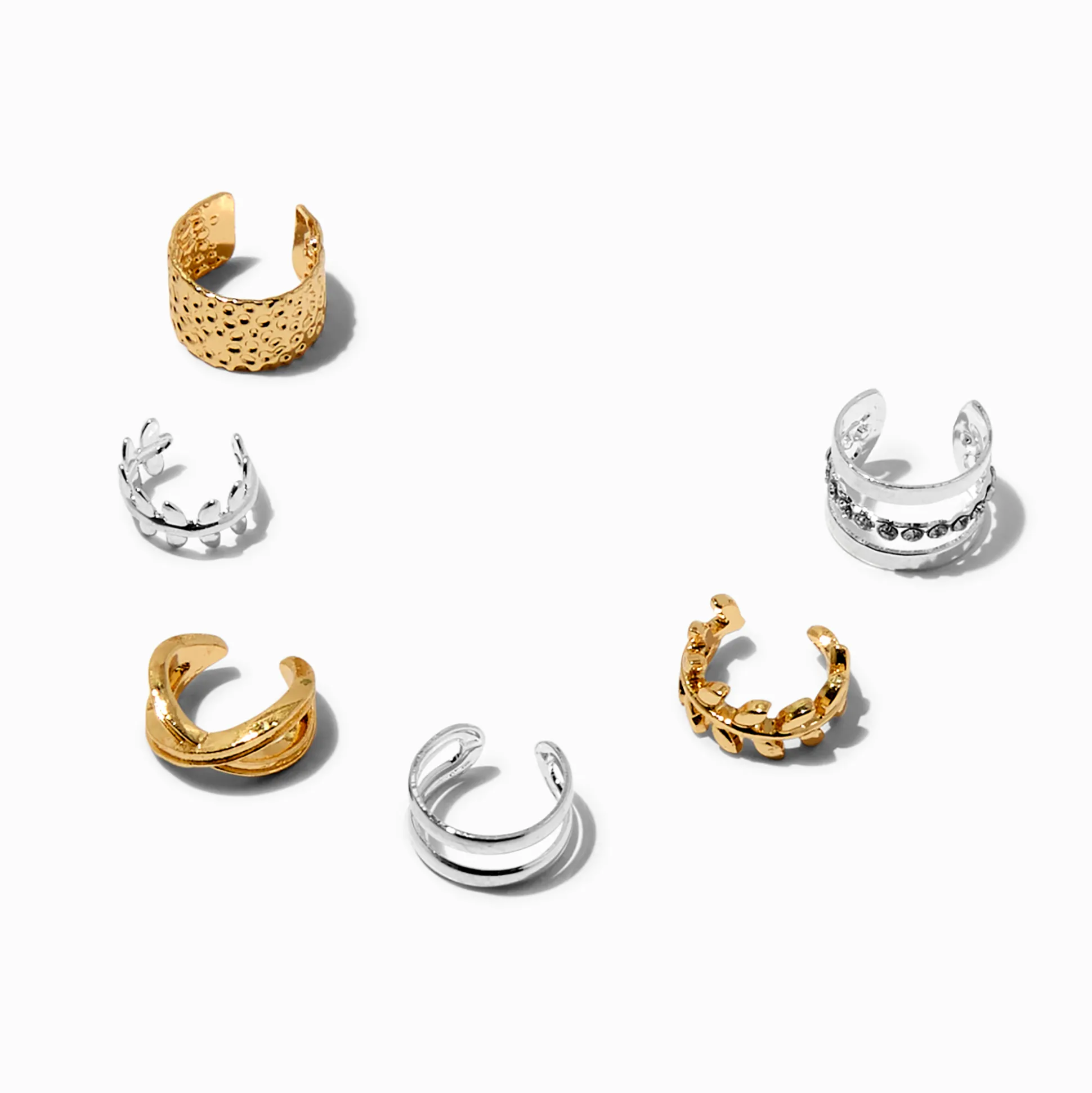You won’t be-leaf the upgrade this ear cuff set provides. The six-pack set includes silver- and gold-tone options with leaf details, glittery accents, and more.