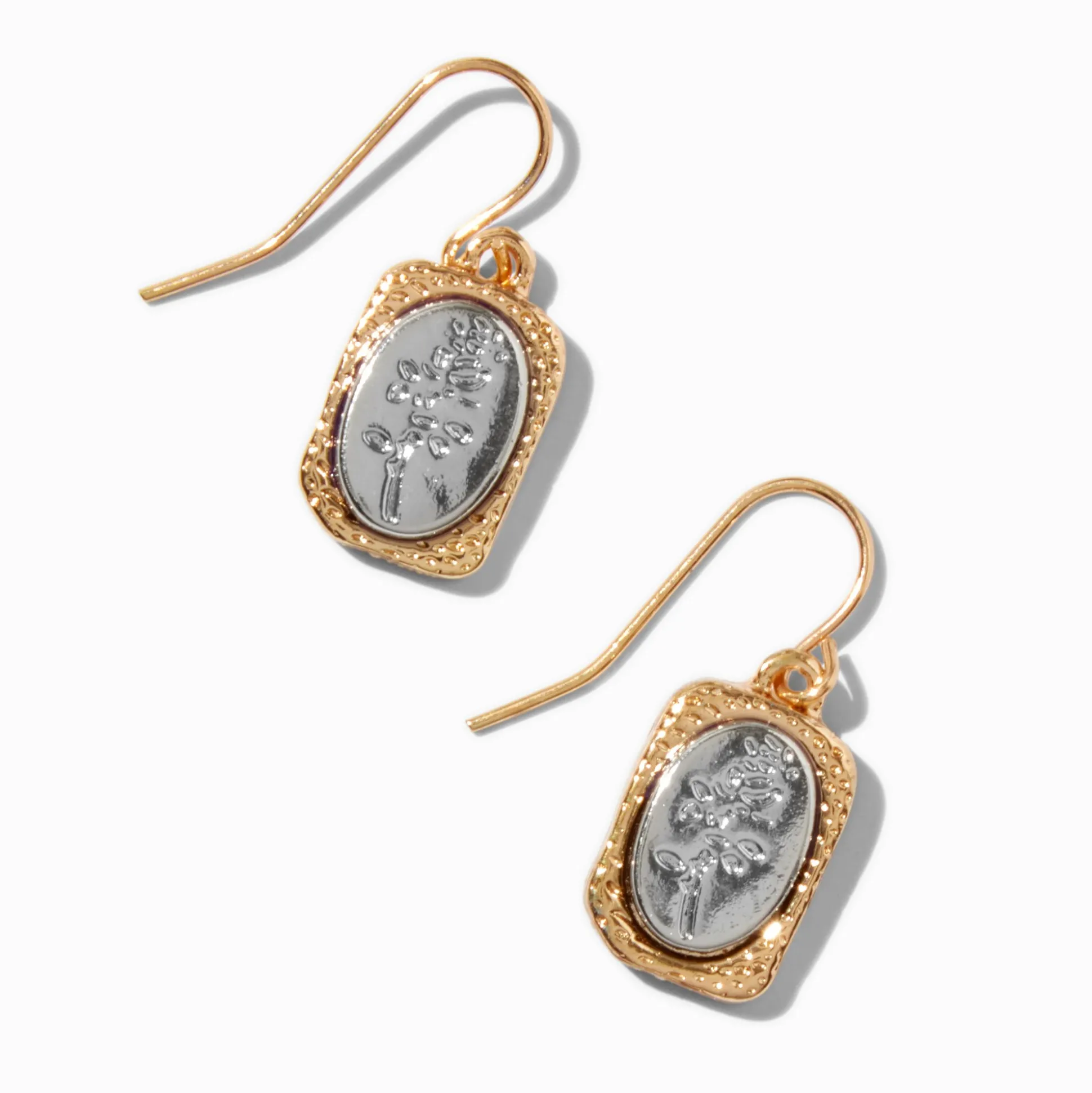 Look like you belong in a museum in these drop earrings. The mixed metal designs have a rose medallion that gives off classic style.