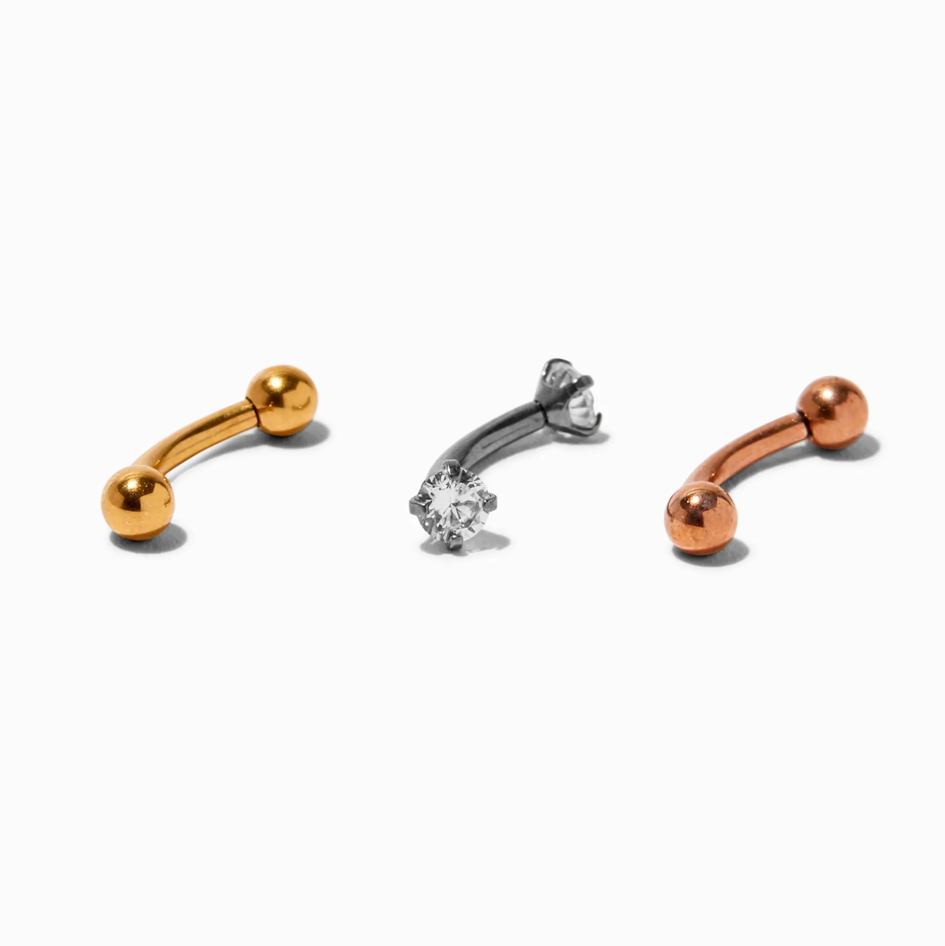 Accessorize your ears with these earrings! Featuring 3 different mixed metal rook earrings, this pack includes an earring with ball designs and cubic zirconia.