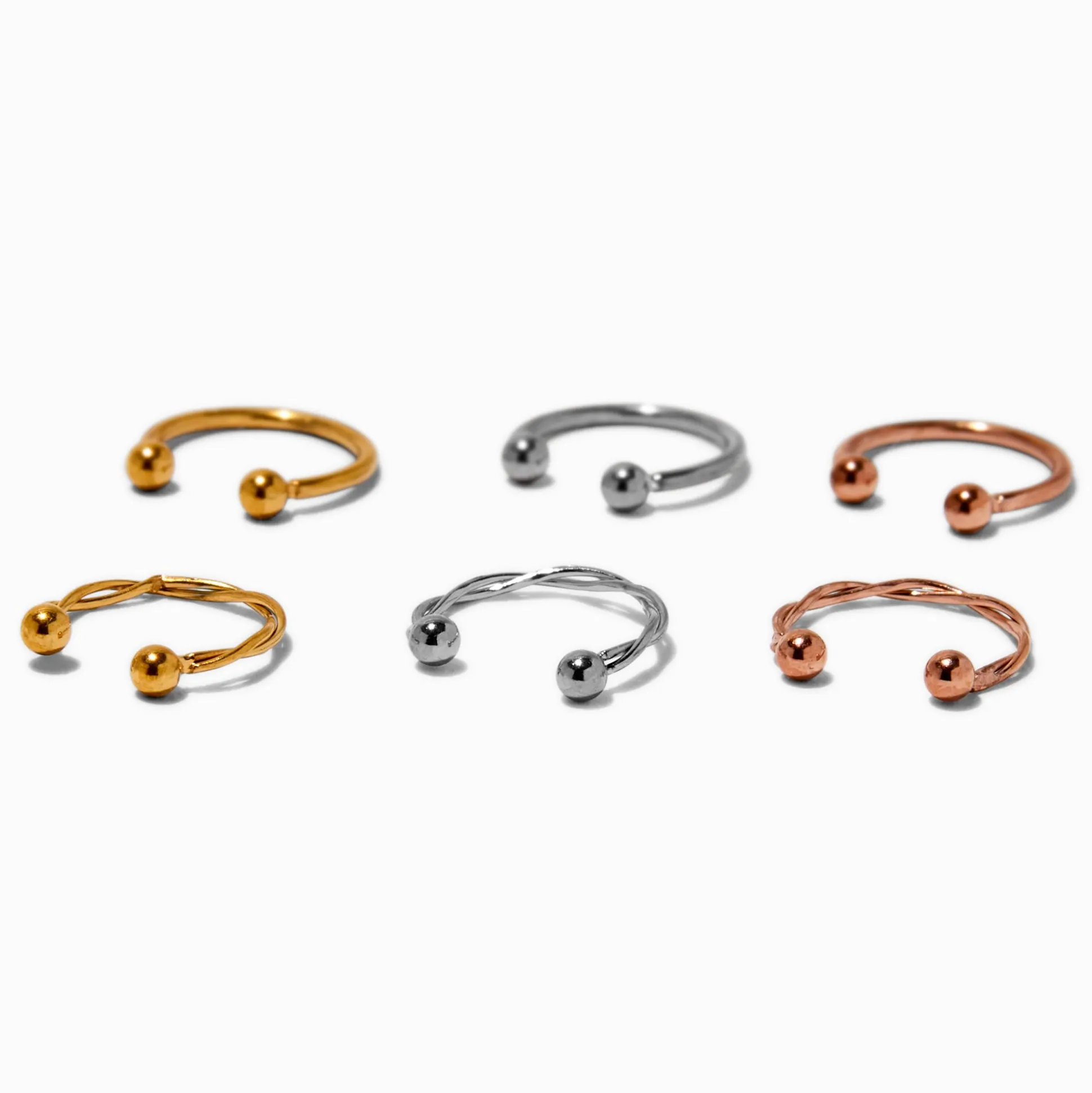 Get the look of a real nose ring with no piercing needed! These faux nose rings come in silver-, gold-, and rose gold-tone metal finishes in either twisted or solid designs.
