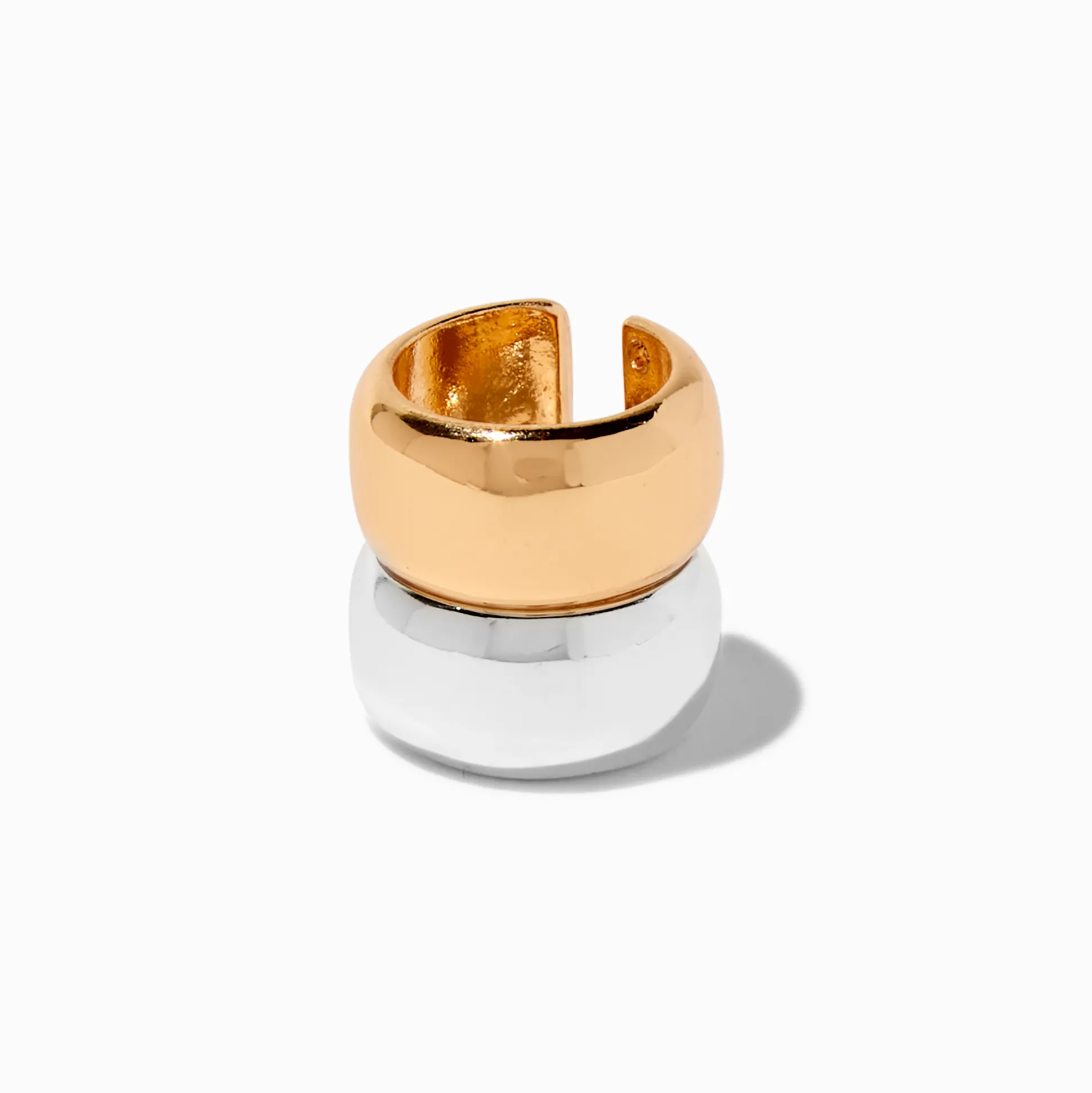 Rock some gold- and silver-tones on your earscape with this ear cuff. The wide band design has a two-tone finish that will work with everything.