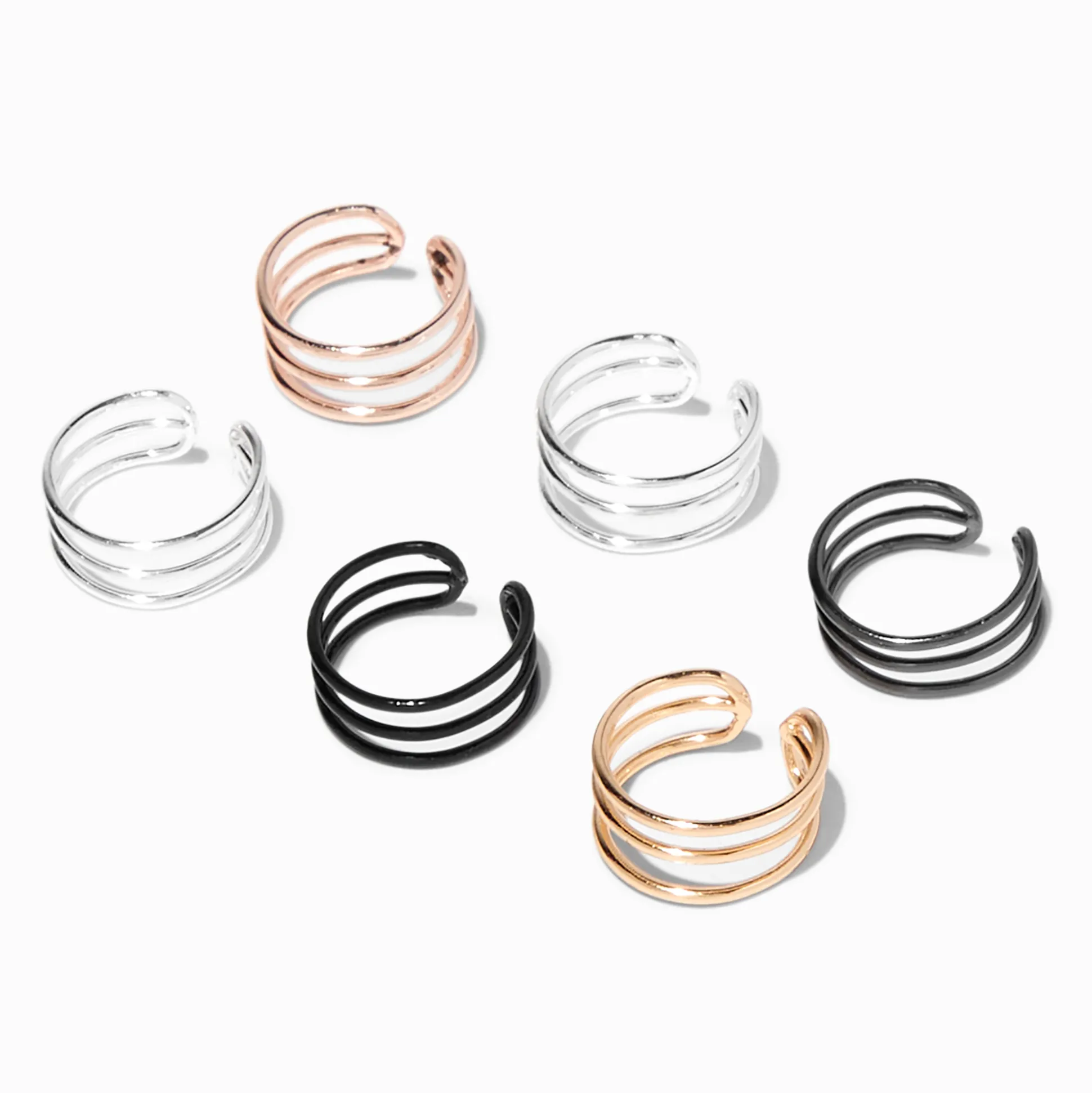 Give your cartilage some extra flair with these ear cuffs. The six-piece set includes silver-, gold-, and black-tone options with no piercing required.
