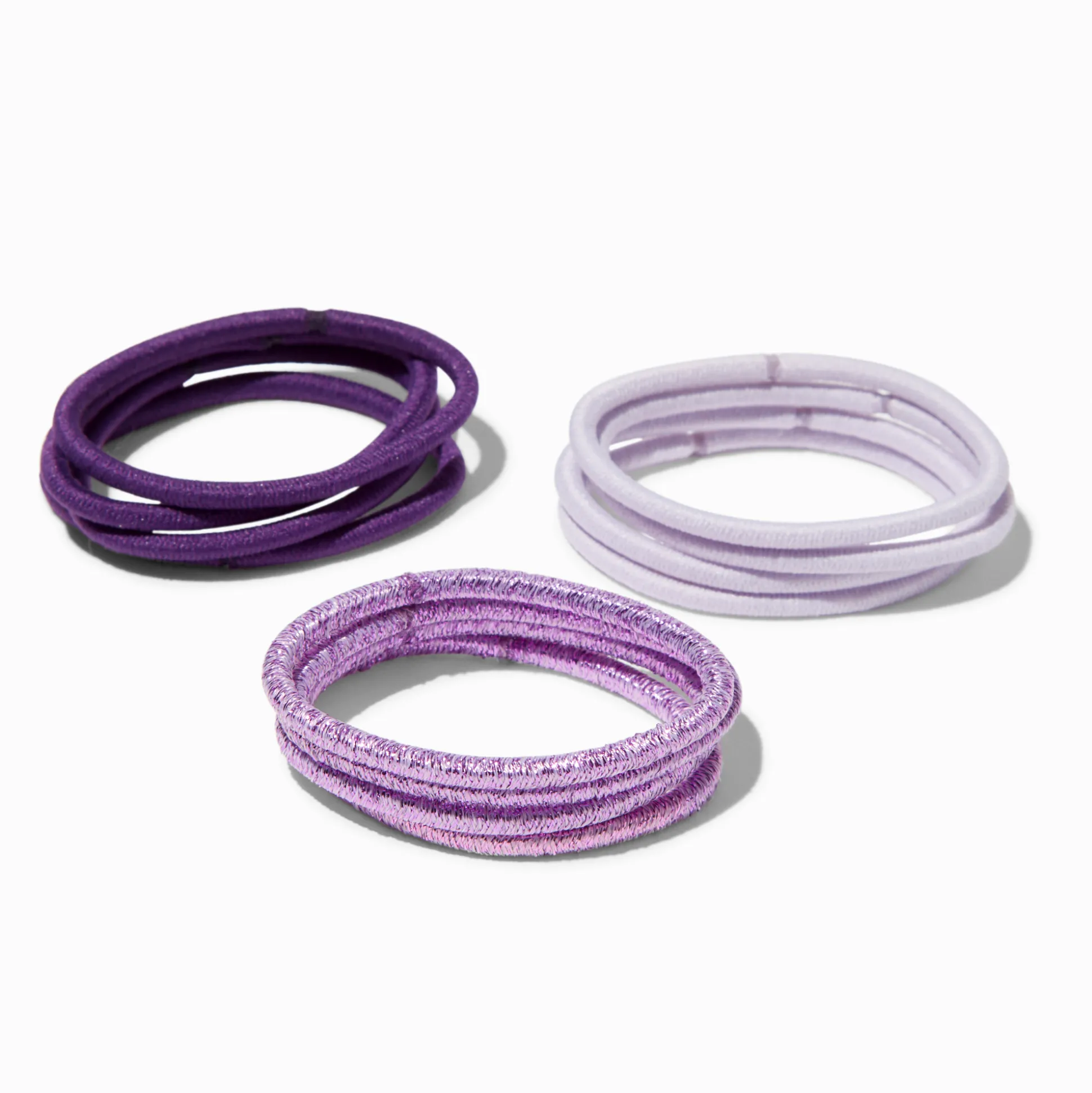 Put your hair up with these classic, everyday hair ties! You get four dark purple, four light purple, and four with a shimmering finish.