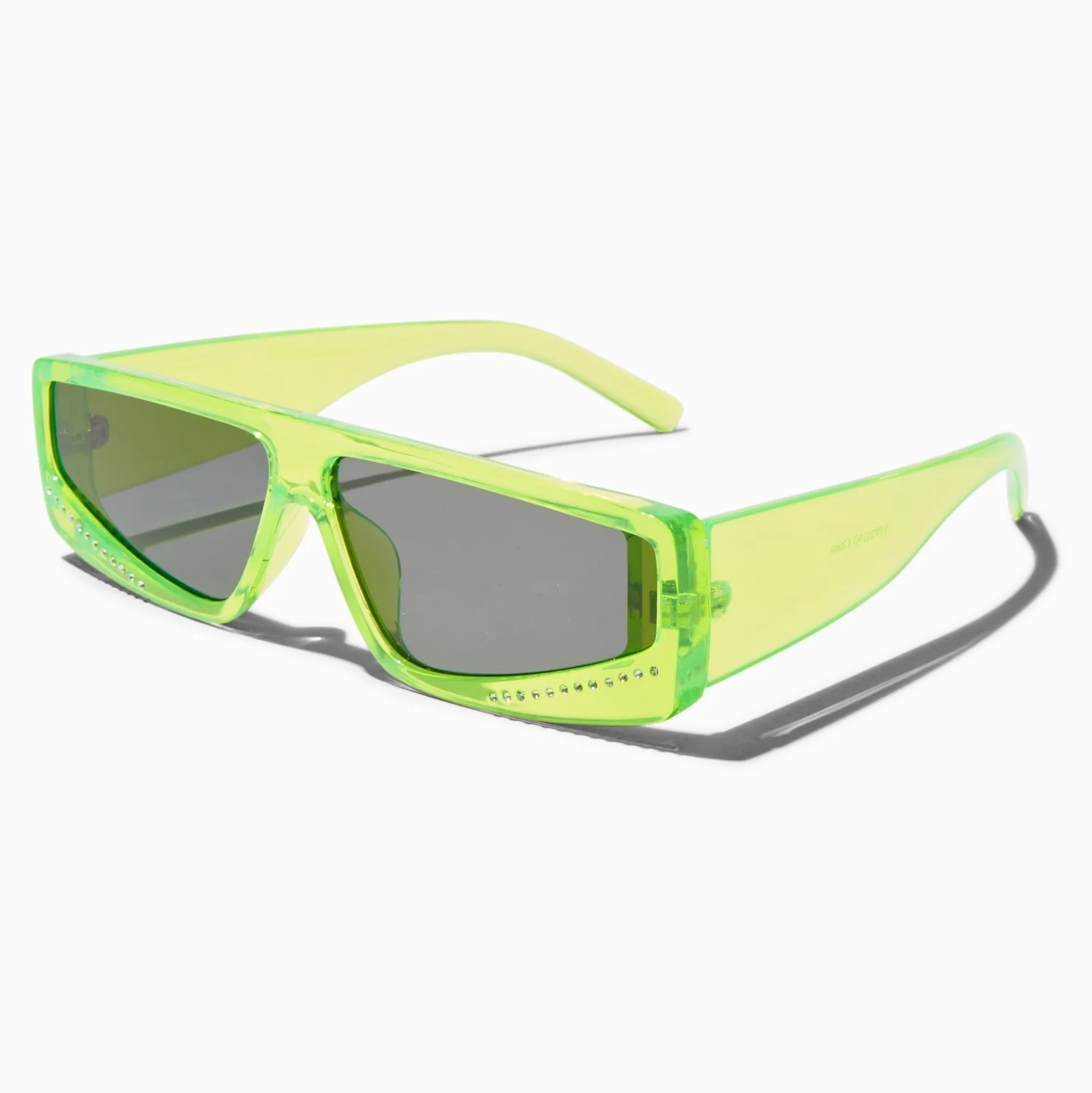 Protect your eyes from the sun and stand out doing it, too! These racer-style sunglasses have bright neon green frames and have tiny crystal accents. Tuck them into your backpack or purse so they’re handy whenever you’re out and about.