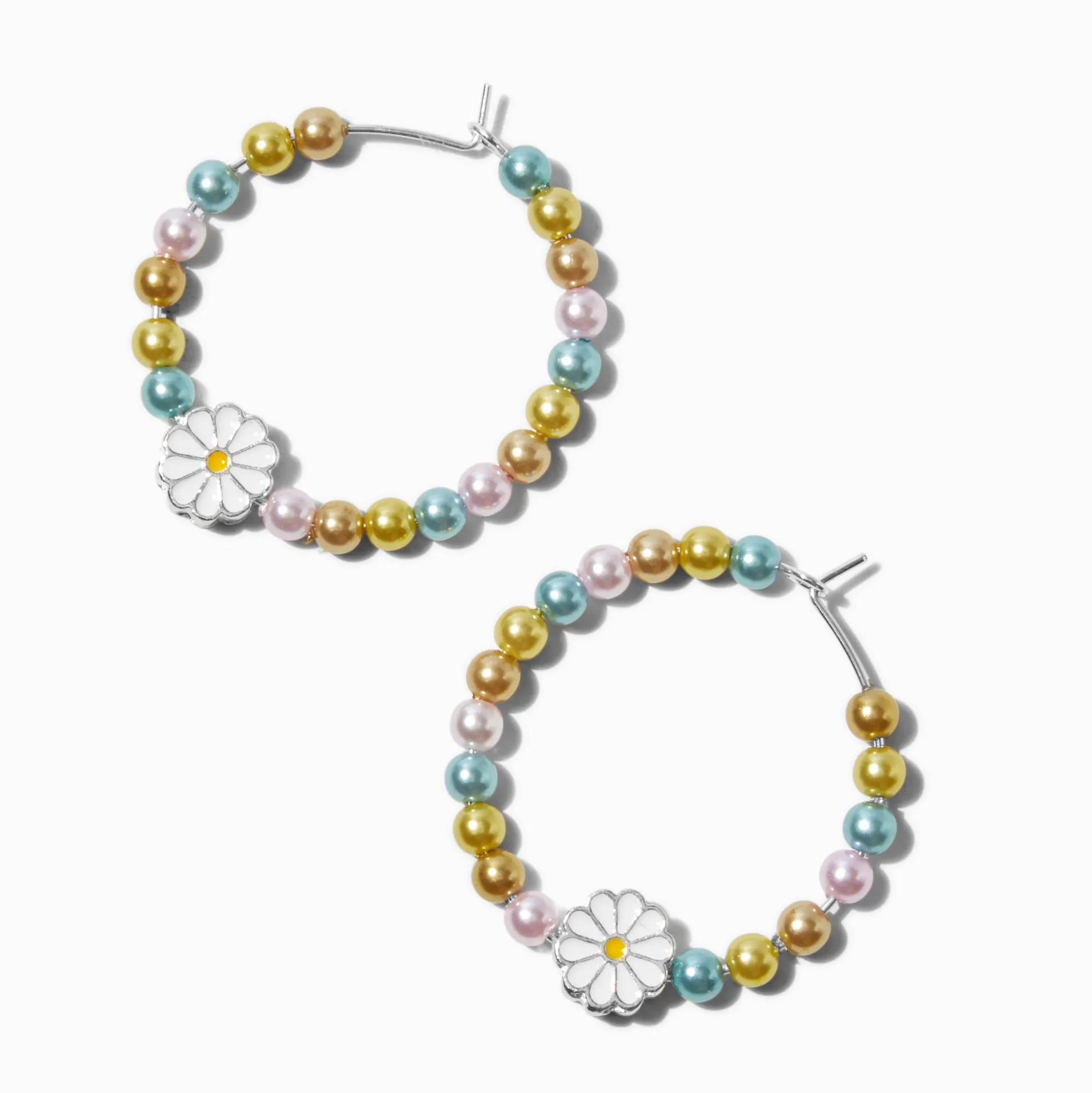 If daisies are your fave flowers and pastels are your fave hues, these hoops are definitely your thing. The silver-tone designs are covered in colorful beads and finished with a daisy charm.