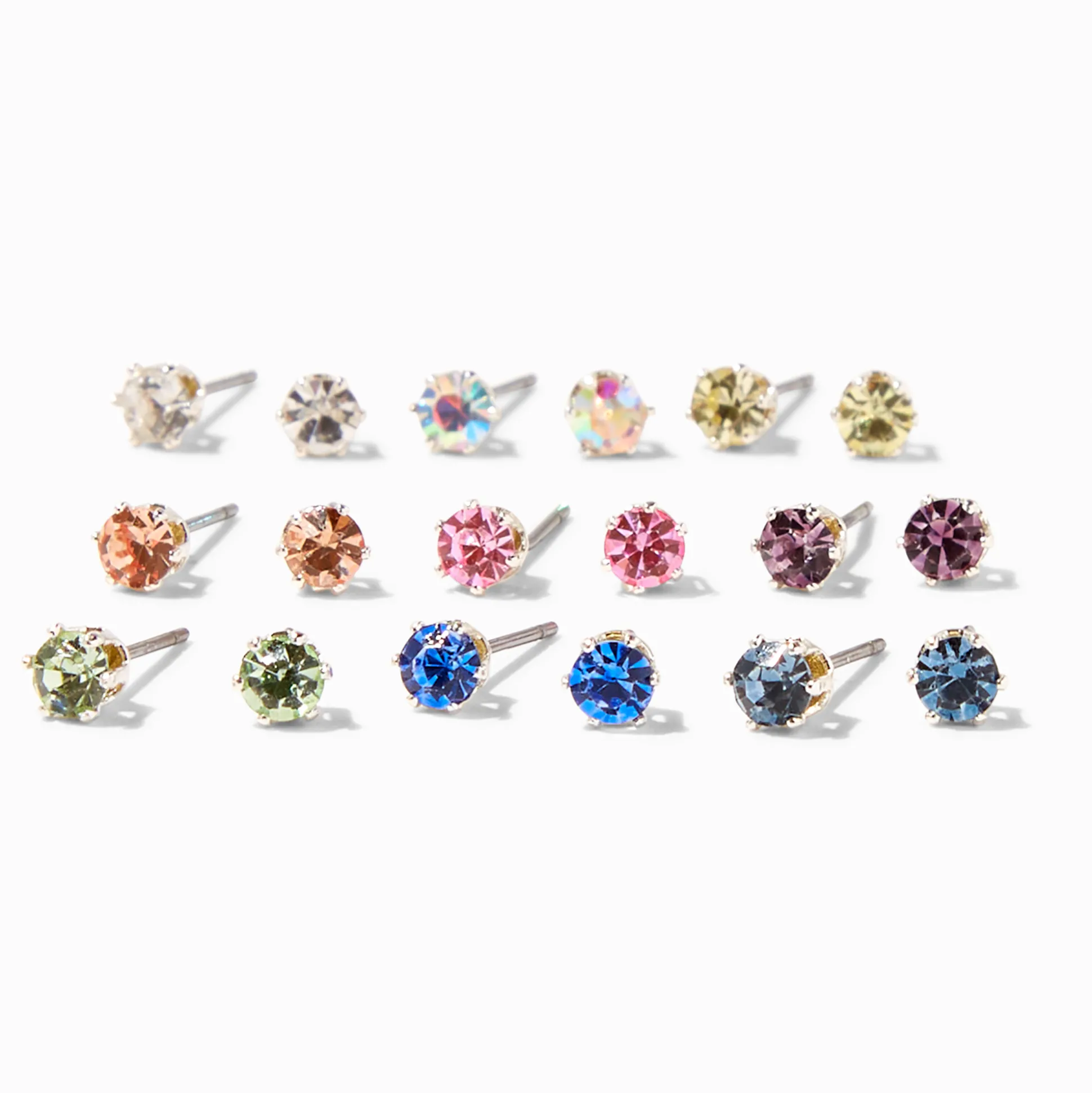 Add some subtle sparkle with this stud earrings set. The nine pairs includes faux crystals in white, orange, pink, green, blue, and more.
