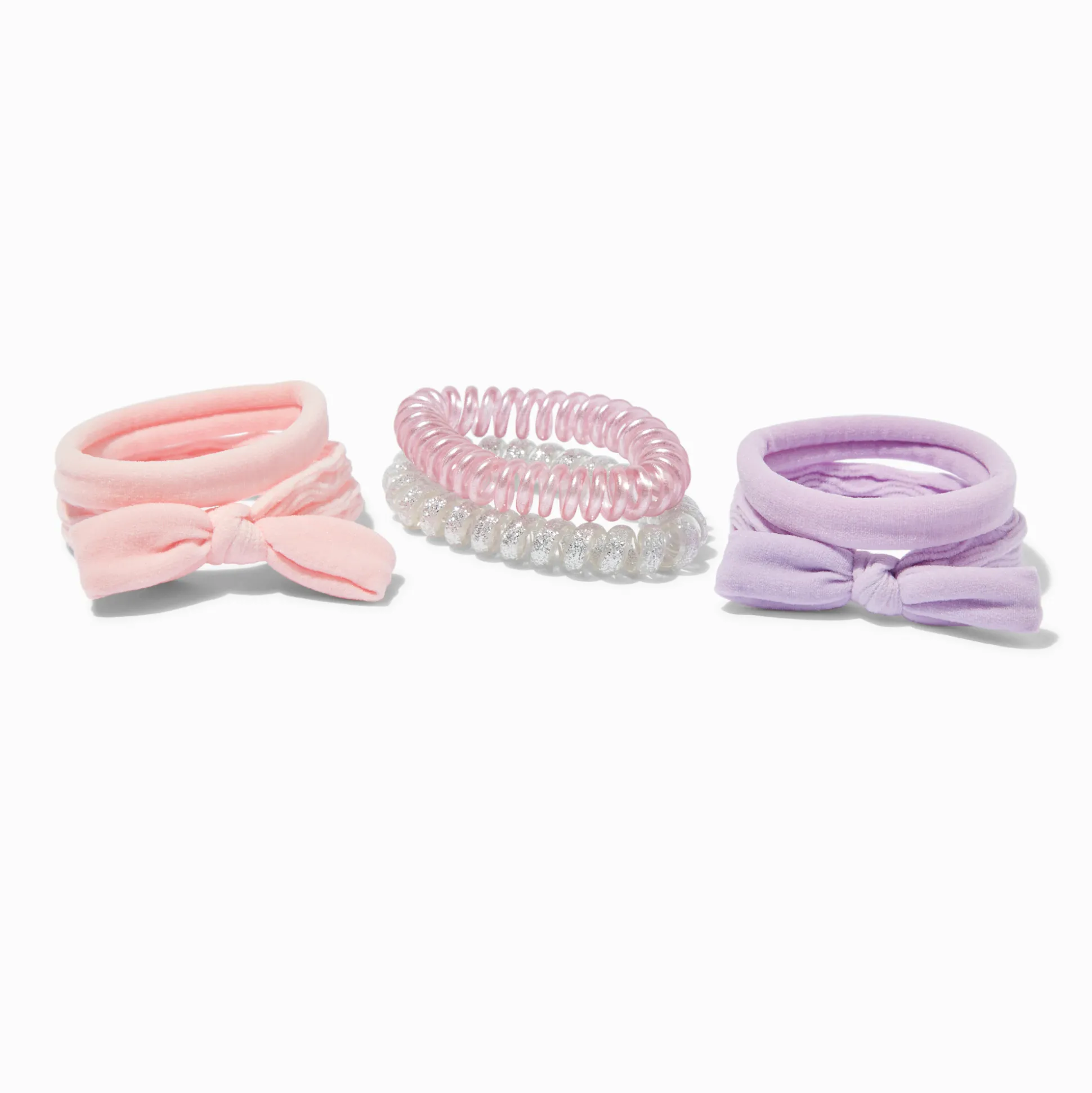 Whether you prefer rolled hair ties or spiral, this helpful set can give you both. The six pack includes two rolled hair ties, two rolled hair ties with bows, and two spiral ones. This set is a good way to try both styles of pulling your hair back.