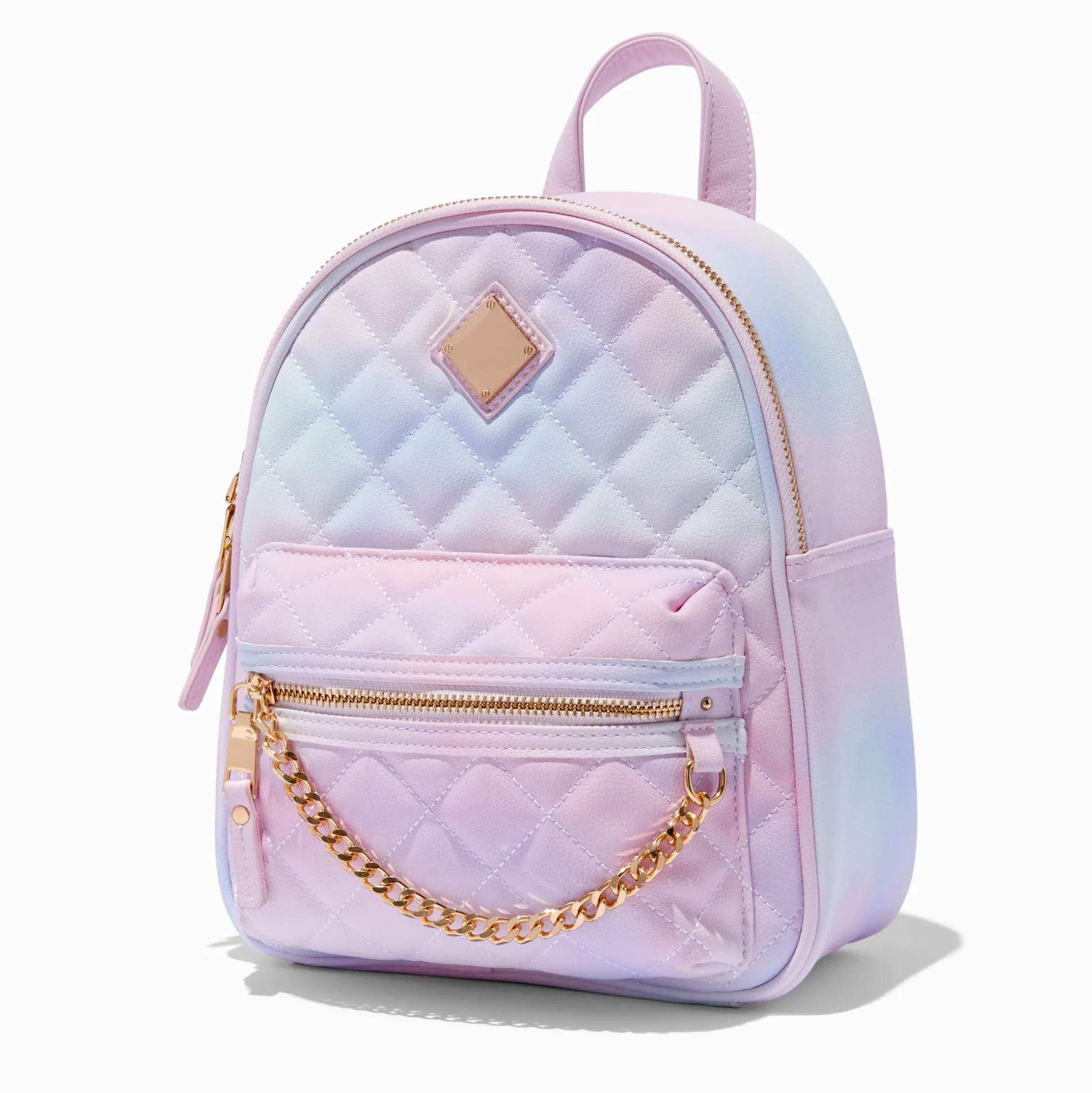 Small in size but big on style, this petite backpack is decorated all over with a quilted design and and gold-tone hardware! The chunky gold-tone chain detail on front adds even more wow! Inside the main compartment and the front pocket, there’s just enough room for a few essentials, like your phone, wallet, and keys. The shoulder straps are adjustable to fit anybody.