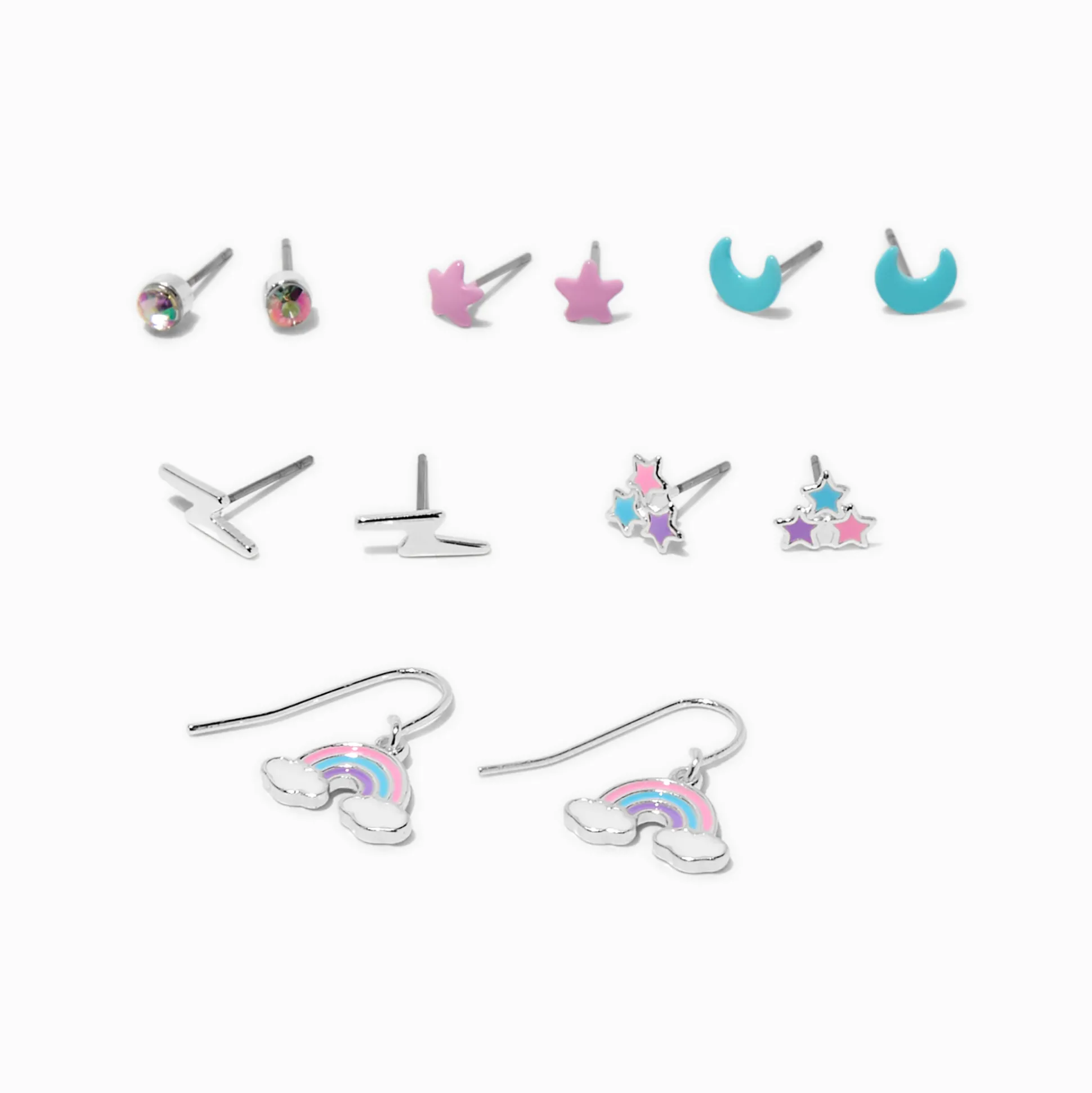 In this adorable set, you’ll get six sets of earrings in either a stud or drop fashion. Each earring has a celestial design in pastel tones.