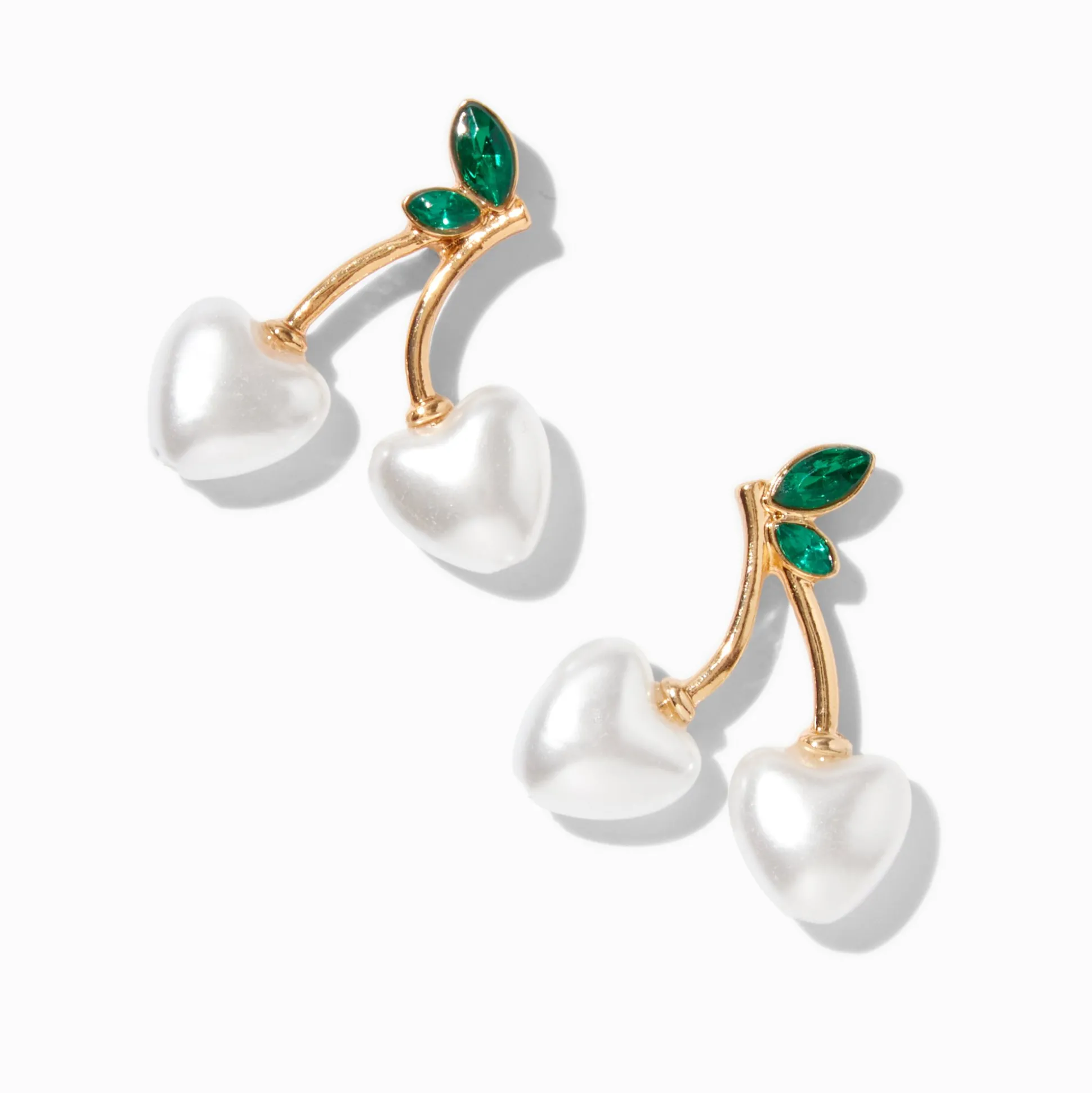 These earrings are delish!. The earrings have faux pearl cherries on gold-tone post backs.